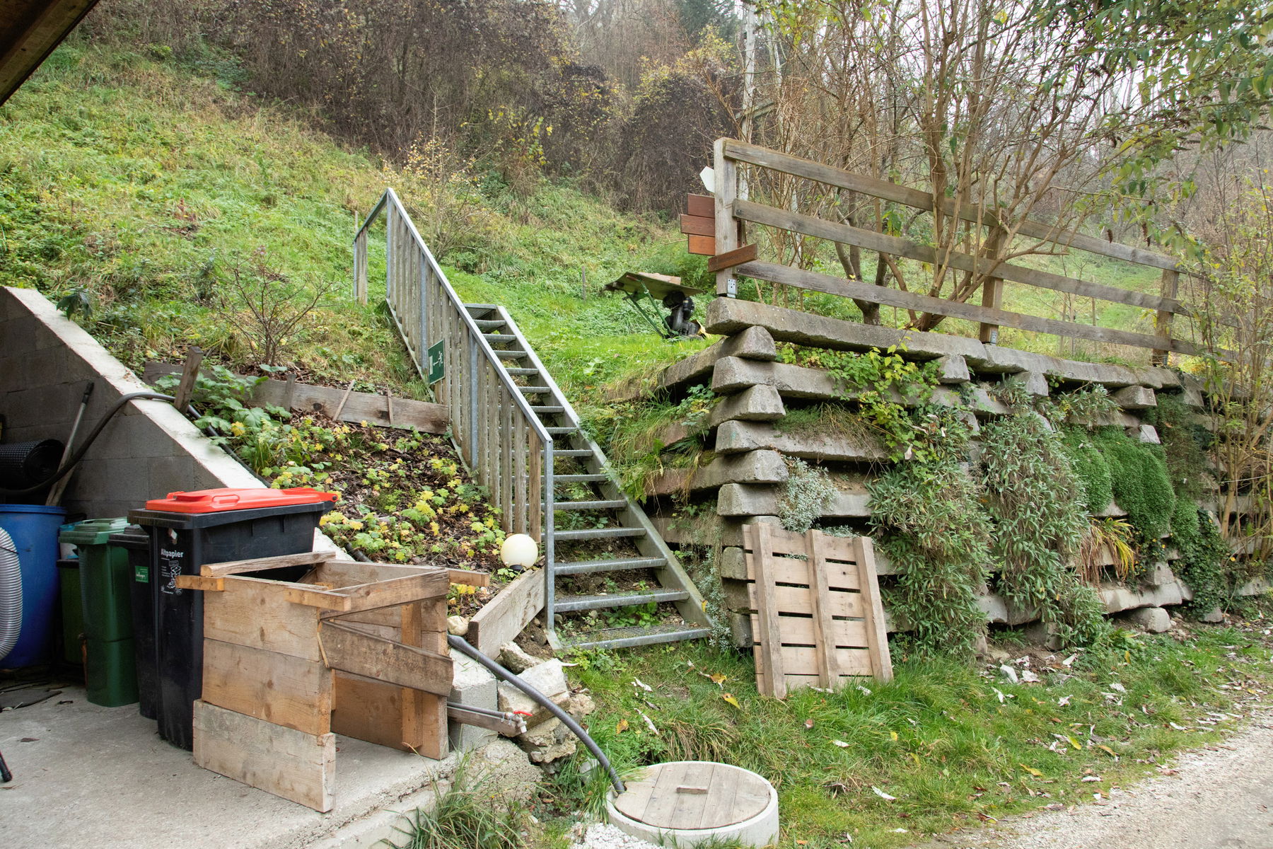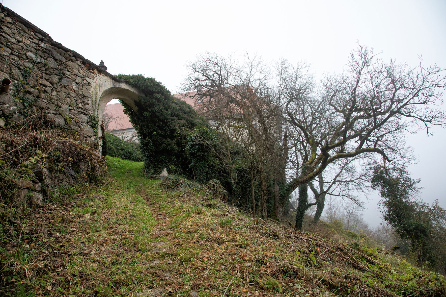 Ich nähere mich dem Aufstieg zum Schloss Eschelberg. Wer nicht ortskundig ist, hat es schwer den Einstieg zu finden bzw. als solchen zu deuten.