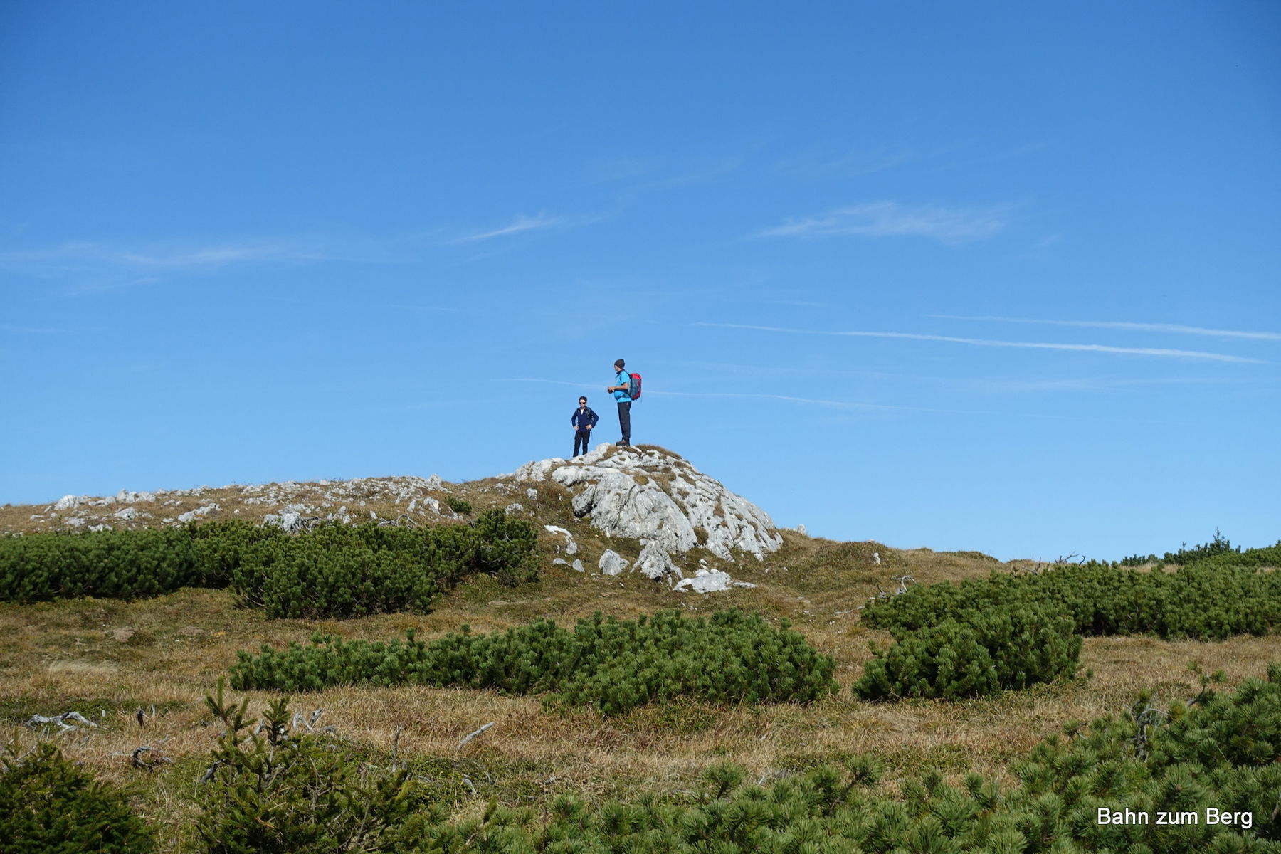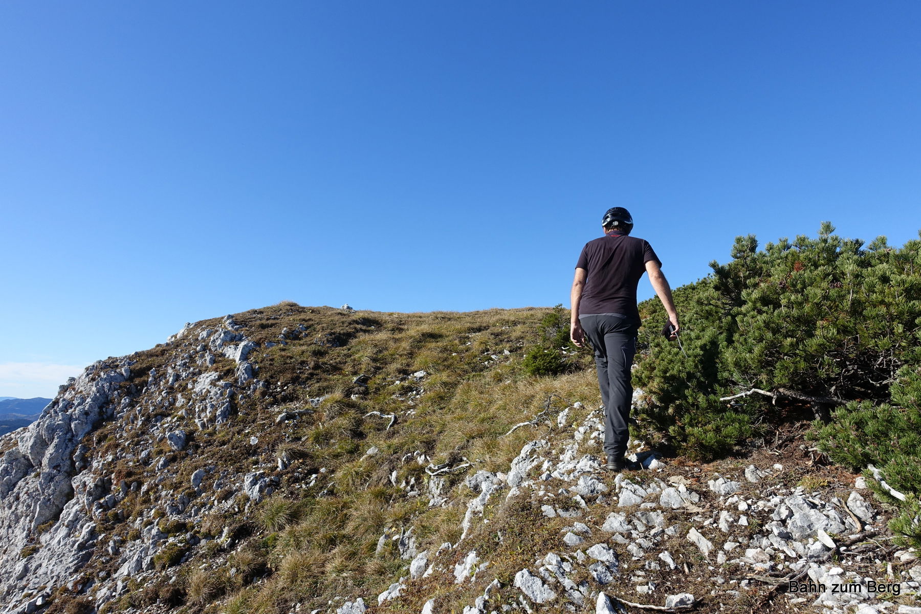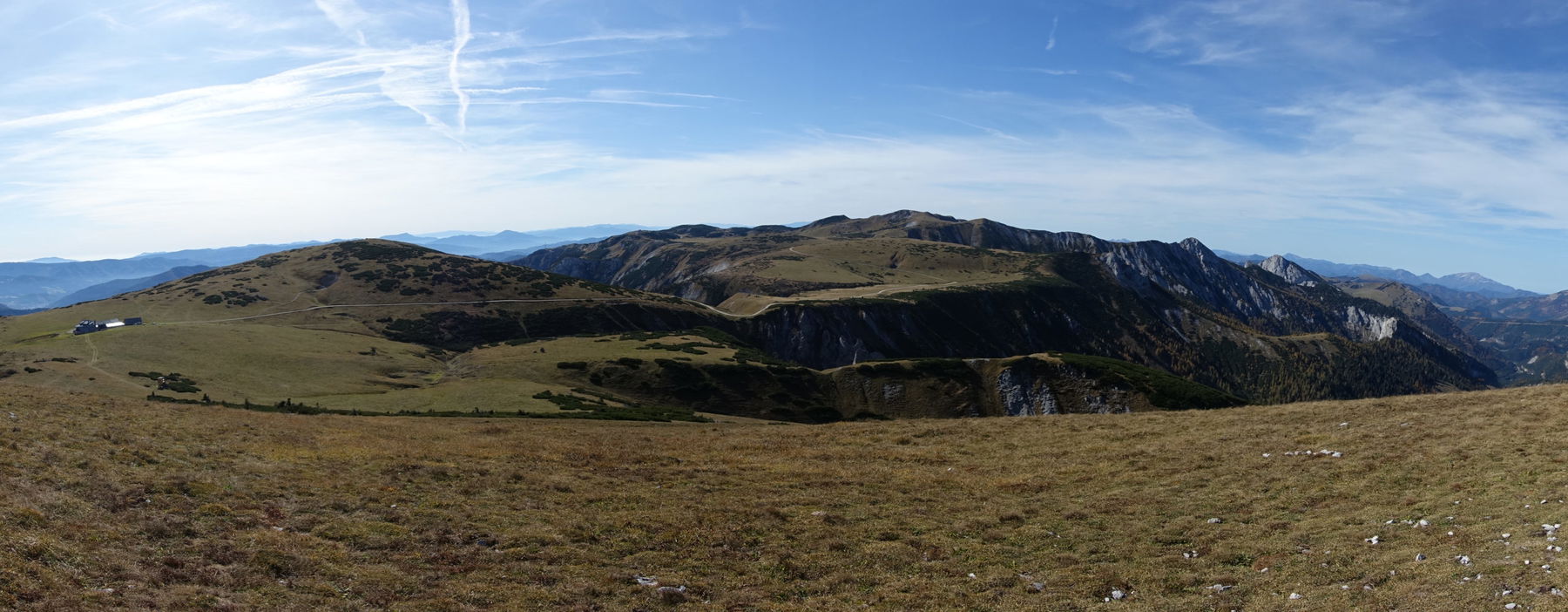 Ab jetzt sind wir endgültig über der Baumgrenze und genießen bei herrlichem Wetter ein sehr schönes Panorama auf Rax, Mürztal und alles rundherum.