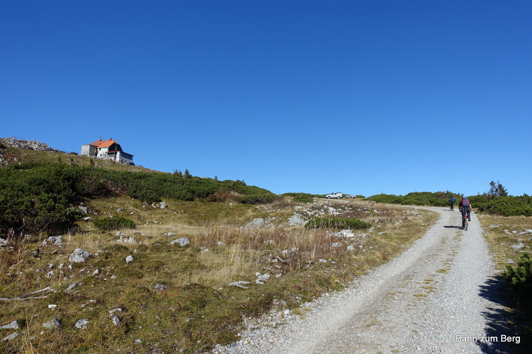 Die nächsten 11 Kilometer bis zum Schneealpenhaus sind dann steigungsmäßig etwas anspruchsvoller: Hier sind etwas mehr als 1.000 Höhenmeter zurück zu legen. Die Auffahrt ohne Motor ist damit als sehr anstrengend zu bezeichnen.