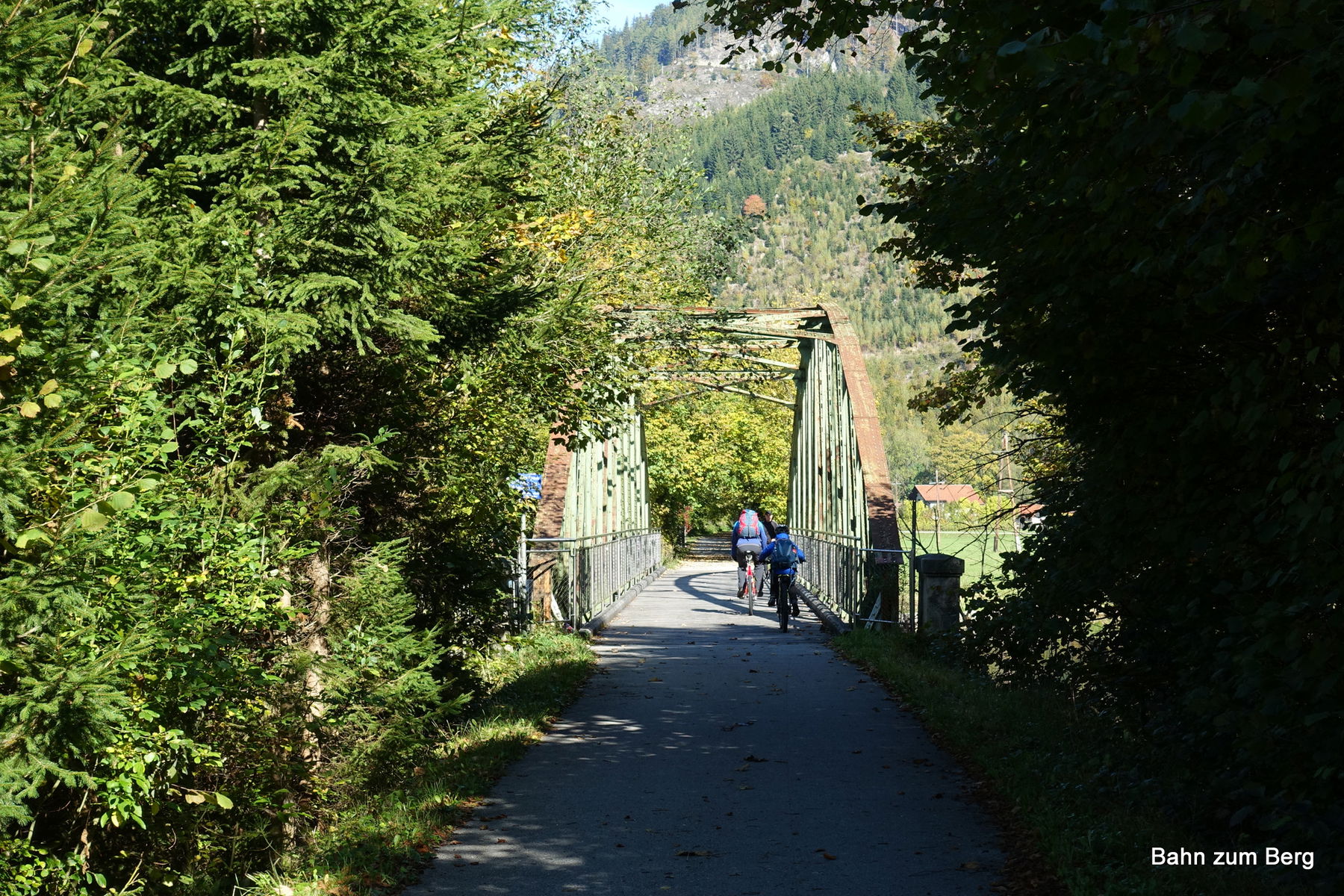 Der Radweg startet nach der Tennishalle und zweigt nach rechts ab, führt an einer Schleusenanlage vorbei und biegt schließlich auf die alte Mürztalbahntrasse ein. Diese erkennt man zum Beispiel an der alten Eisenbahnbrücke.
