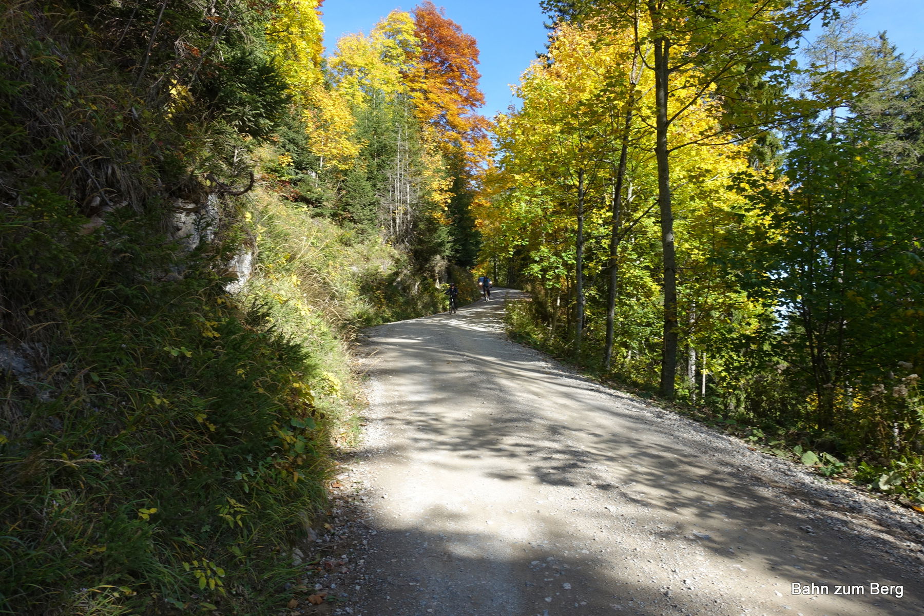 Gut ist, dass wir die Fahrstraße nicht bis ganz unten fahren, sondern wieder den Knappensteig hinüber queren und dann recht einsam abfahren.
