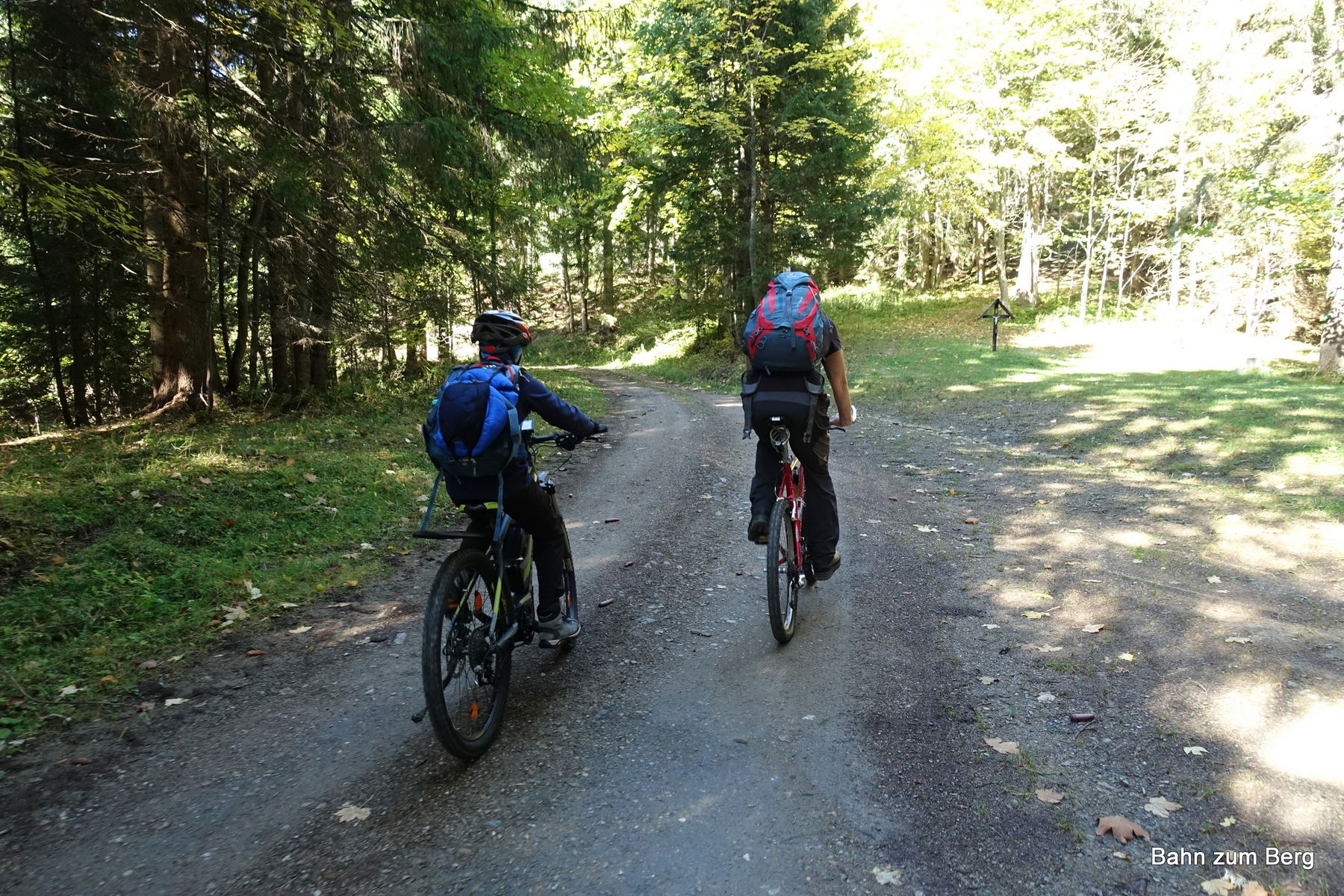 Nach weiteren 15 Minuten erreichen wir die Abzweigung zum Hanslgrabner und biegen von der Bundesstraße auf die Forststraße ab. Ab hier herrscht Fahrverbot – Fahrräder ausgenommen.
