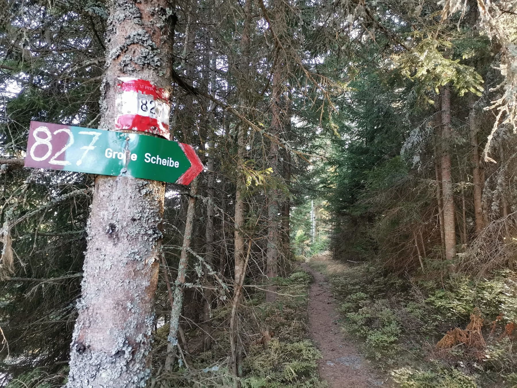 Am Weg zum Beeralplkopf entdecke ich auch eine Abzweigung nach Raxen hinunter. Aber da gibt es überhaupt keinen Bus, also lieber weiter zur Großen Scheibe und gleichnamigen Hütte.