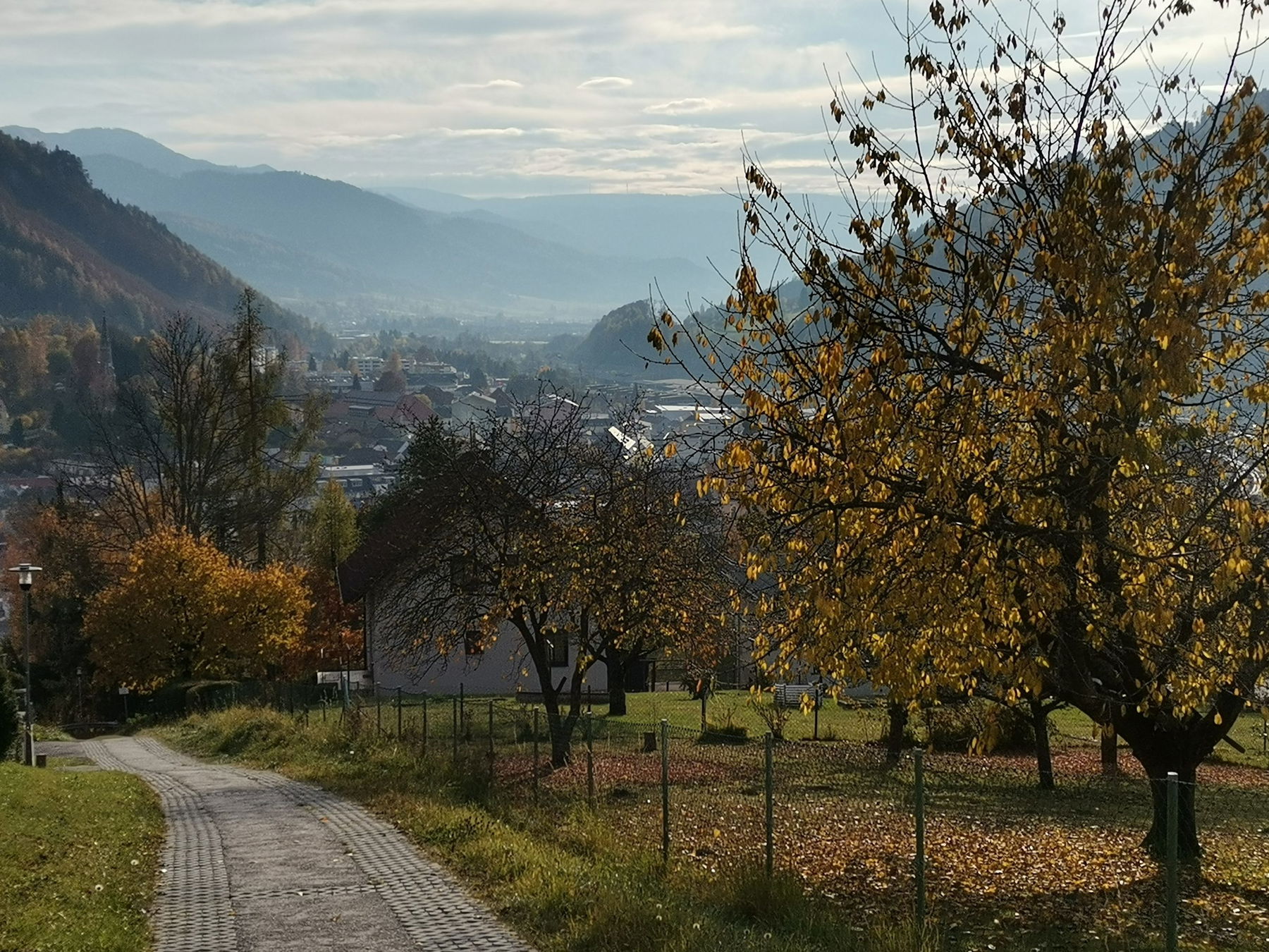 Von der Hütte zum Bahnhof in Mürzzuschlag brauche ich ungefähr eineinhalb Stunden – flott gegangen – angeschrieben sind zwei Stunden. Zeitweise auf der Forststraße und dann wieder auf einem Hohlweg gelange ich ins Tal. Der Weg kommt direkt beim Bahnhof heraus. Und als Besitzerin eines Klimatickets brauche ich mir über den Fahrscheinkauf keine Gedanken machen. Einfach einsteigen und heimfahren.