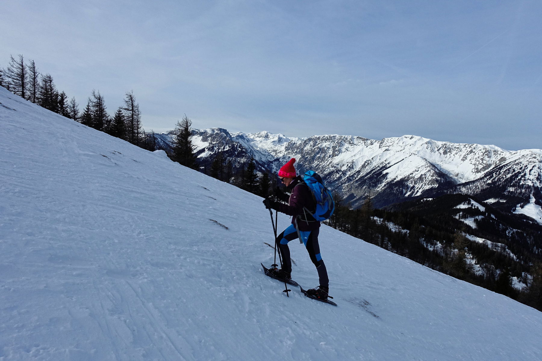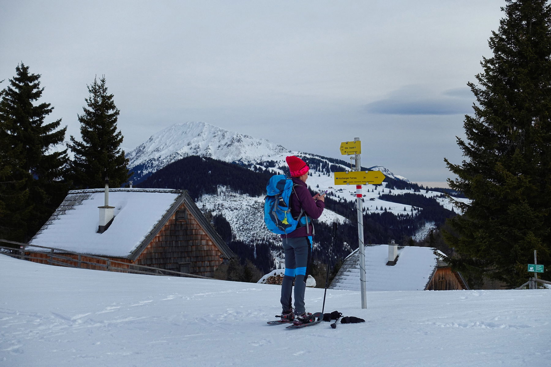 Am 23. Dezember nehme ich mir gerne einen Urlaubstag und mache eine Wanderung. Es ist ein schöner Gegensatz zum hektischen Einkaufstrubel. Mit dem Hochanger nördlich von Turnau, hat Veronika auch noch eine ganz besonders schöne Schneeschuhwanderung ausgewählt.