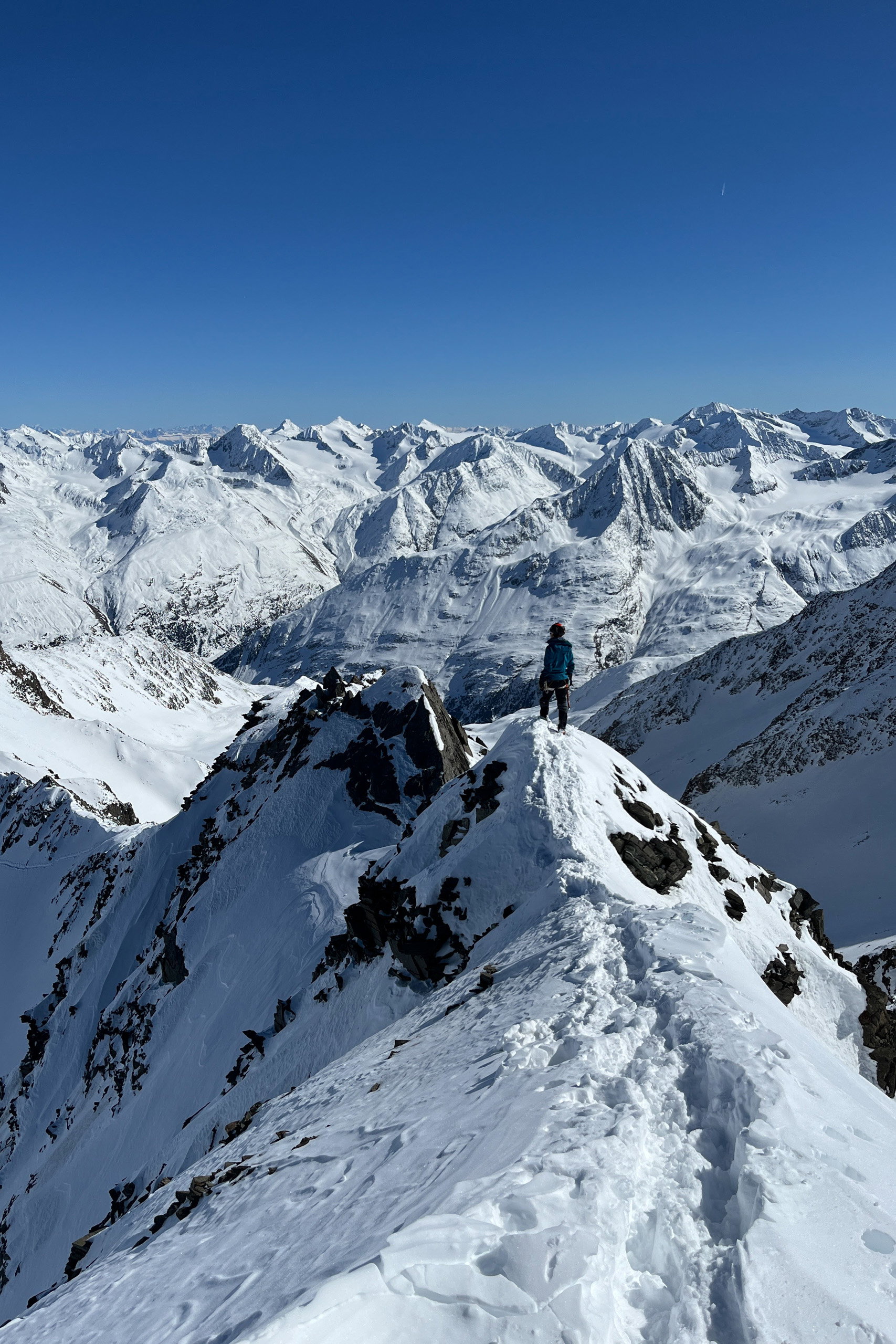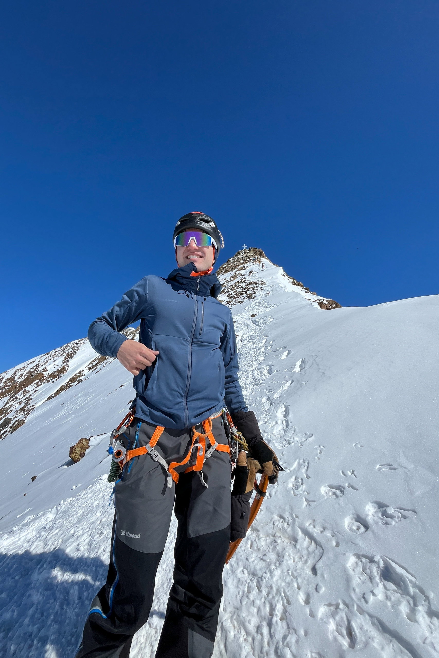 Am Grat klettert man dann noch etwa 100 Höhenmeter, bis man am höchsten Punkt Tirols (3.768 Meter) steht.