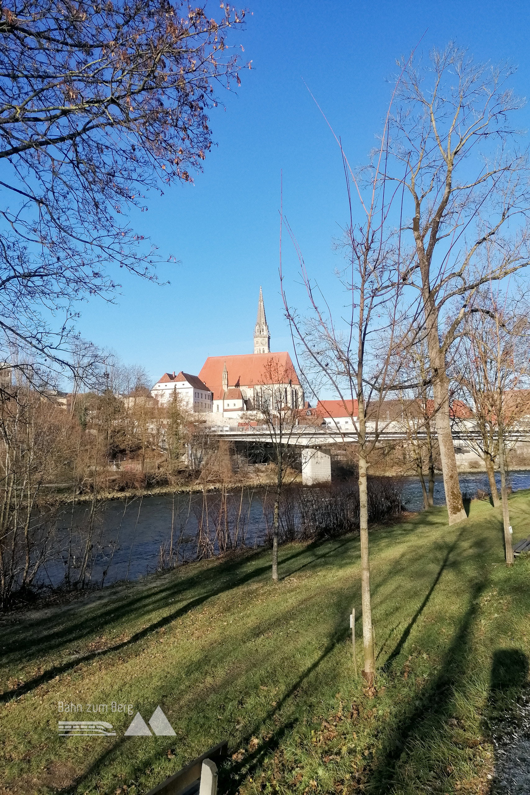Beim Altstadt-Steg geht’s die Stiege hoch, an der Evangelischen Kirche vorbei und – schon seid ihr am Bahnhof.
