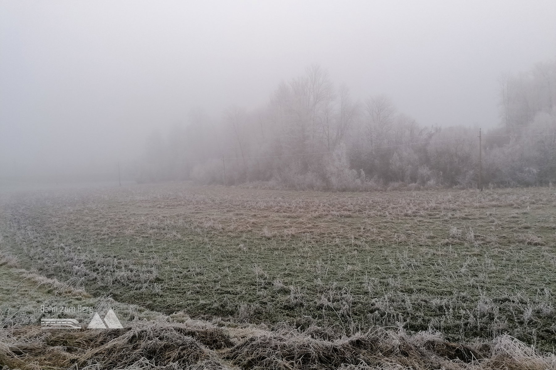 Wir landen in einem wunderbaren Winterwonderland, in dem alle Äste und Zweige (ebenso Spinnweben und vertrocknete Blätter) mit einem weißen Raureif und Eiskristallen überzogen sind. Wir bleiben oft stehen, um Fotos zu machen und ich finde, ich mache hier schon mein Foto des Jahres. Bezaubernd!
