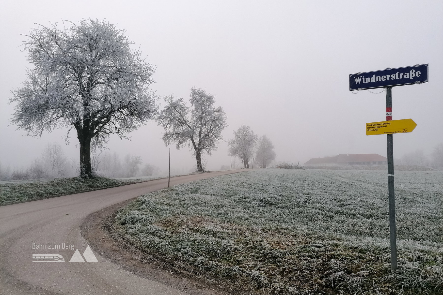 Die Wege sind gut beschildert (Richtung „Steyr“) und sehr reizvoll zu gehen – Wiesenwege, Hohlwege, vorbei an kleinen Gehöften. Beim Abstieg wird es auch immer kälter (Inversionswetterlage, noch einmal).