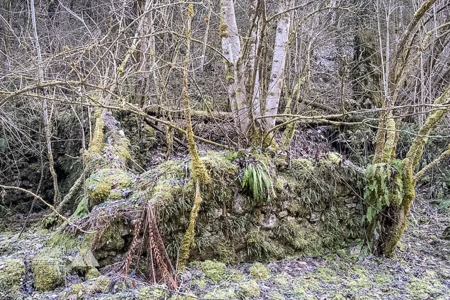 Ich mag solche Geschichten. Wir wandern vor uns hin und zugleich werde ich aufmerksamer und ja – der Wegrand ist gesäumt von den Resten alter Steinhäuser. Ohne die Geschichte des Wendbachtals zu kennen, wären mir diese wohl kaum aufgefallen. Alle sind kaum mehr sichtbar und bereits mit dicken Schichten Moos überzogen. „Dort, wo die alten Obstbäume stehen, da war früher der Garten von einem:einer Wendbachtalbewohner:in.“ Auch daran hätte ich nicht gedacht.