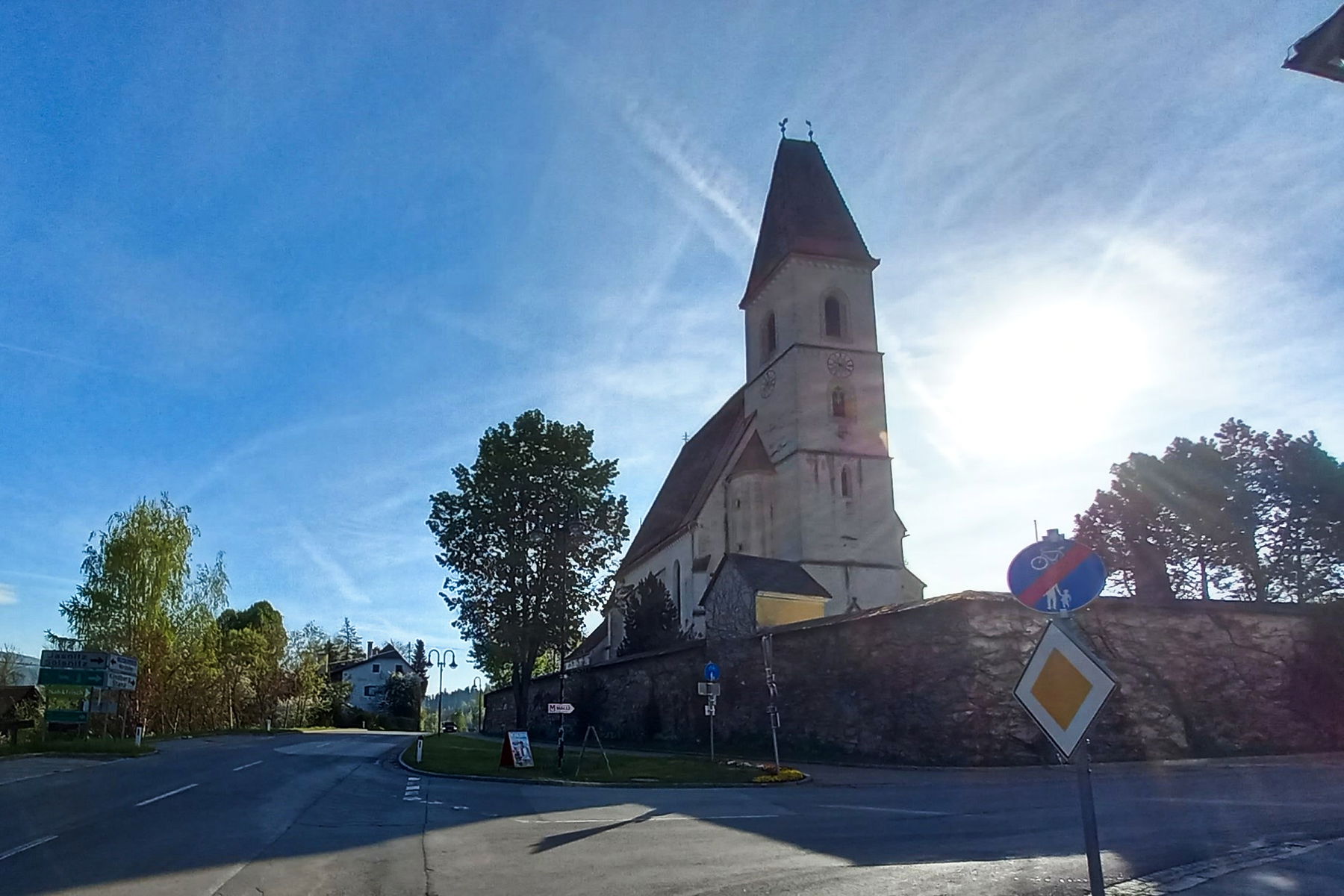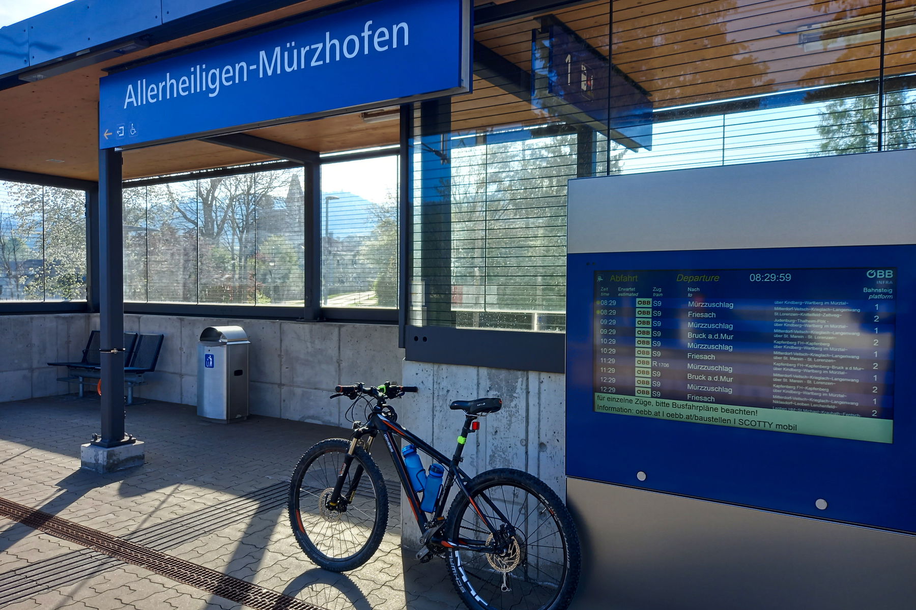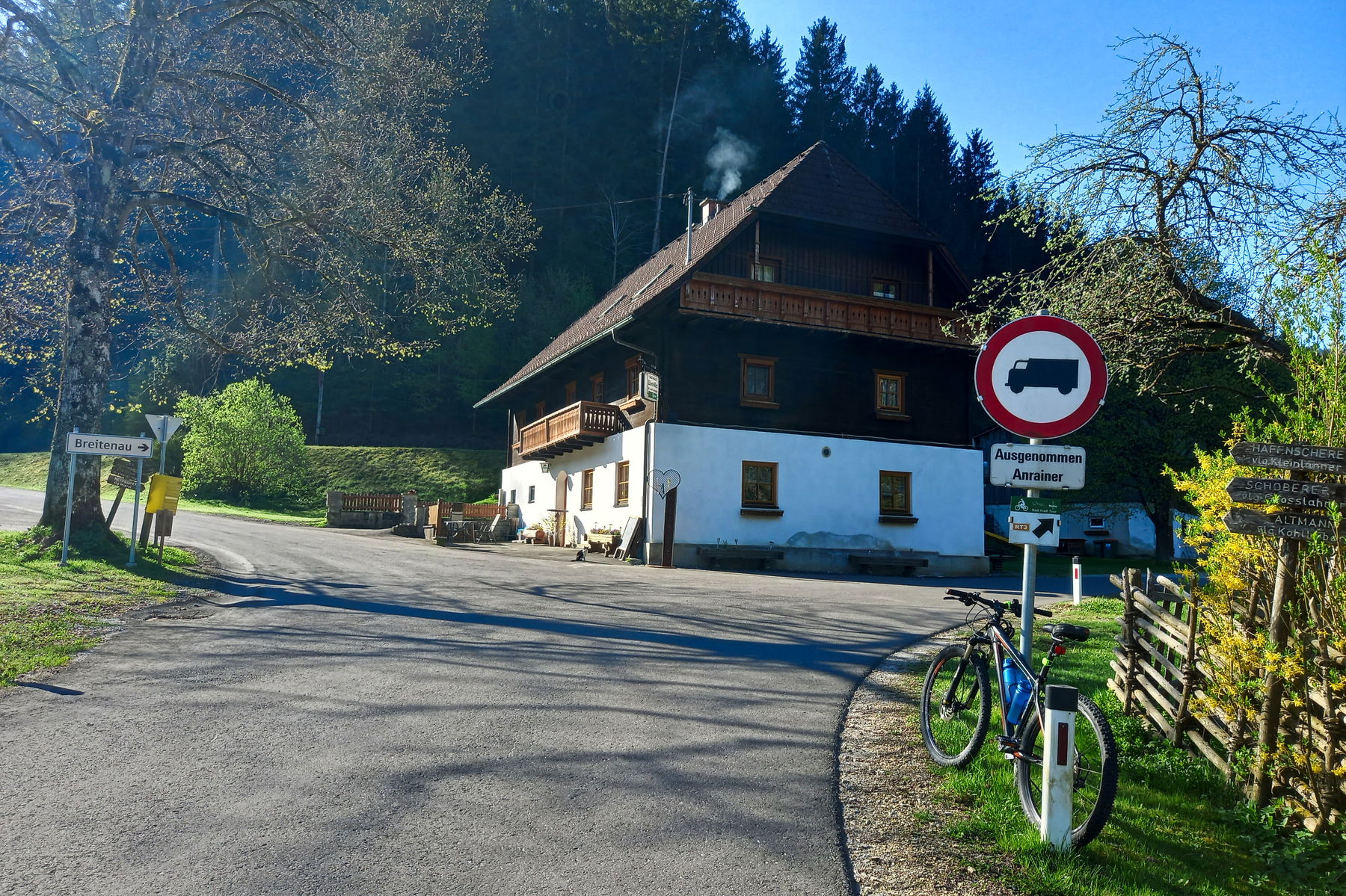 Die Tour beginnt entspannt mit der Anreise zum Bahnhof Allerheiligen-Mürzhofen. Gemütlich geht es auch weiter. Vorbei an der Pfarrkirche von Allerheiligen radle ich den Jasnitzgraben hinein bis zum Gasthof Eibeggwirt. Dabei folge ich immer der beschilderten „Radl-Wadl-Tour“, die aber, anders als der Name vermuten lässt, keine Wadlbeißer-Route ist. Beim Eibeggwirt angekommen, geht es rechts weiter Richtung Breitenau. Hier beginnt auch der etwas steilere Teil der Radstrecke und die Straße schlängelt sich über einige Kehren hinauf zum Eibeggsattel, der das Mürztal mit dem Grazer Bergland verbindet. Auf einer Strecke von circa 4 Kilometern sind etwa 270 Höhenmeter zu überwinden.