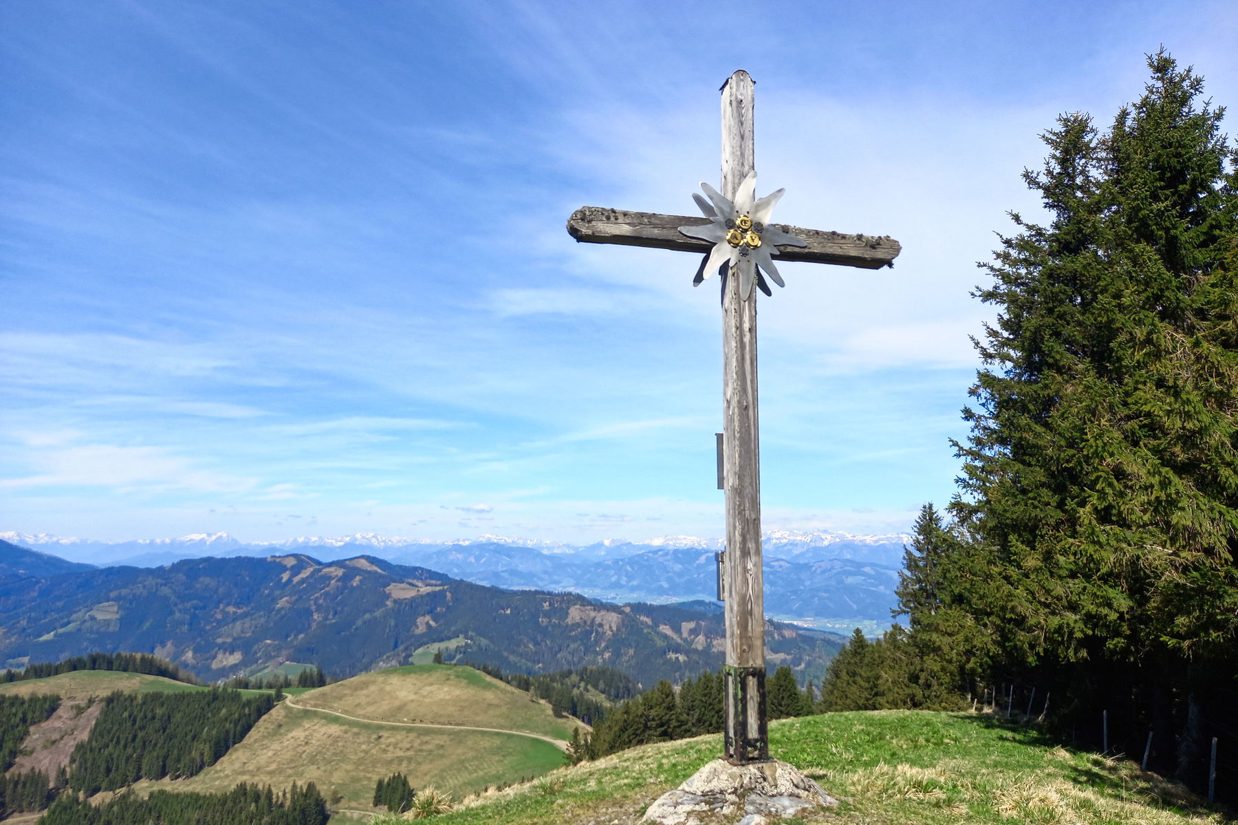Der Eibeggsattel wartet mit einem schattigen Plätzchen auf mich. Hier mache ich eine kurze Pause und stärke mich für den Aufstieg zum Hochschlag. Zu Fuß geht es den Wald hinauf und schon nach kurzer Wanderung erreiche ich den ersten Gipfel meiner Tour – den Ederkogel – ein zugegebenermaßen eher unscheinbarer Gipfel.