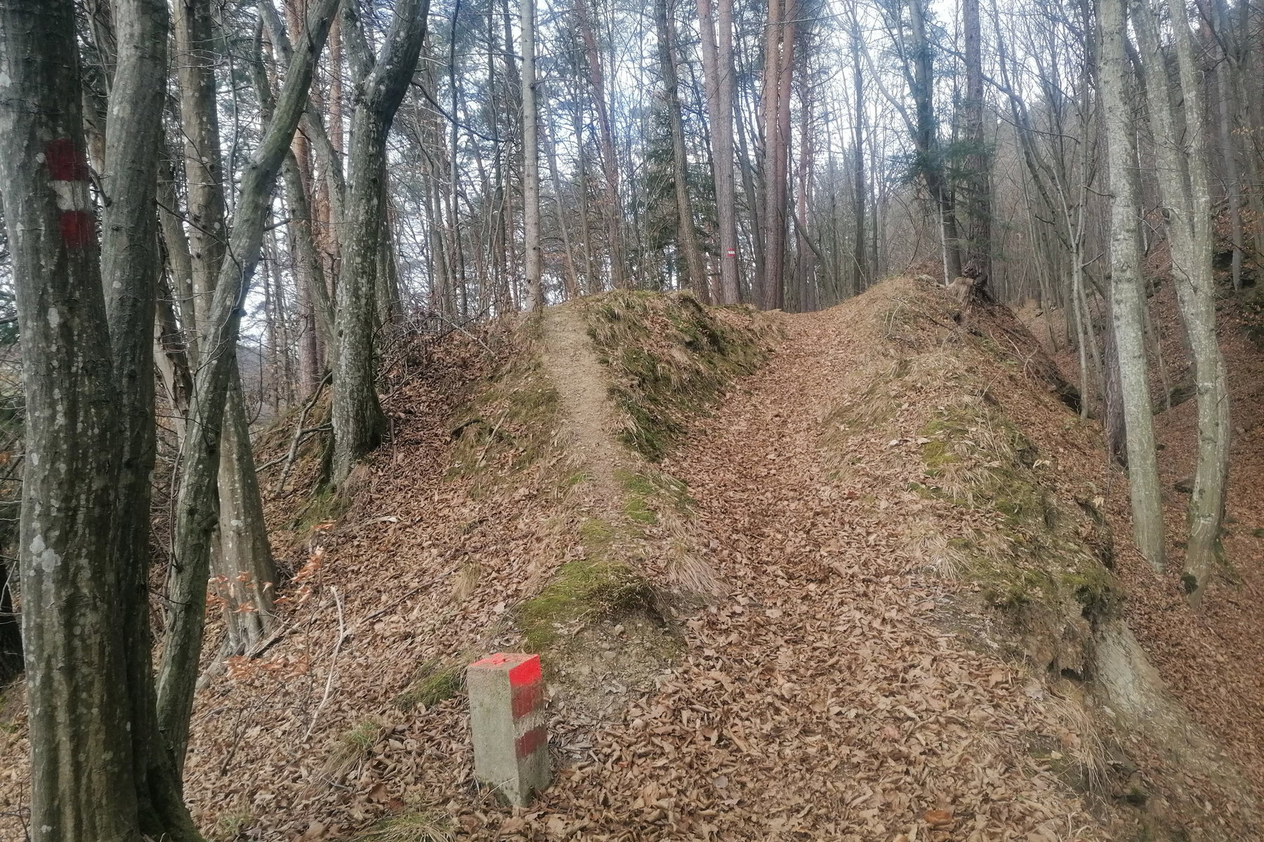 Der Pfad im Wald geht jetzt steil bergab, dafür muss ich nicht mehr auf der Straße gehen (die aber ohnehin kaum befahren ist) und je näher ich dem Talboden komme, umso näher komme ich auch – dem Burgenland.