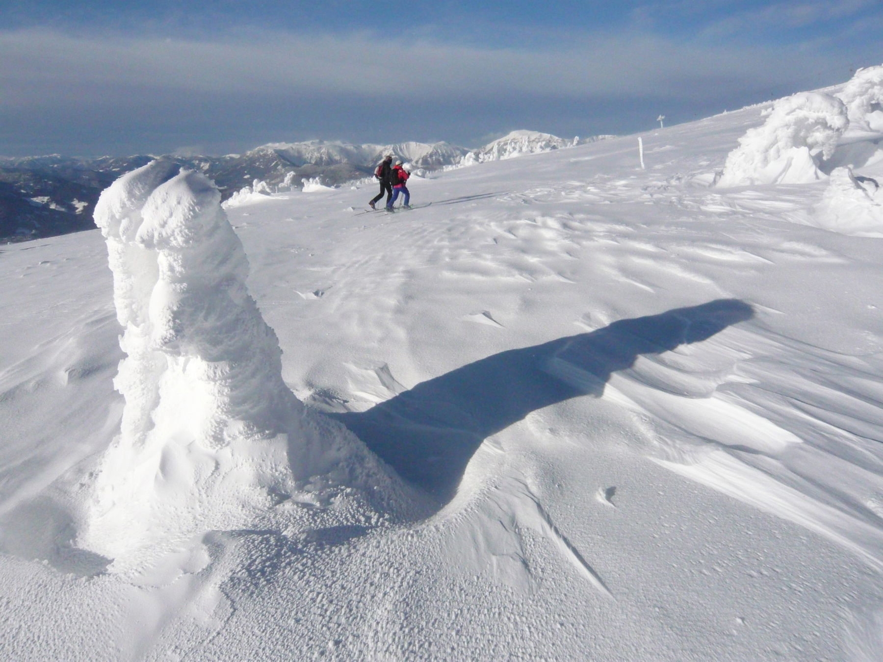 In den vergangenen 20 Jahren hat das Stuhleck ein beachtliches Skitourenrevival erlebt, obwohl es heute mit Liftanlagen bis zum Gipfel erschlossen ist und obwohl es immer schon einen Verruf hatte als kalter, sturm- und nebelanfälliger Berg. Die Gründe: gute Erreichbarkeit auch mit Öffis, (Kunst-)Schneesicherheit sowie das direkt auf dem Gipfel stehende gemütlich-warme Alois-Günther-Haus, das viel dazu beiträgt, dass die Tour auch bei Schlechtwetter zumutbar ist. Was bleibt: bei starkem Wind ab der Baumgrenze die zuweilen extremen Bedingungen, die keinesfalls unterschätzt werden dürfen (rechtzeitig warm anziehen: Anorak, dicke Handschuhe, Haube, Gesichtsmaske). Der Anstieg durch den Kaltenbachgraben ist der nordseitige Klassiker. Die Abfahrt erfolgt oft auf der Piste, weil der untere Teil des Kaltenbachgrabens meist geräumt und daher für eine belagsschonende Abfahrt wenig geeignet ist. Urteile selbst beim Aufstieg!