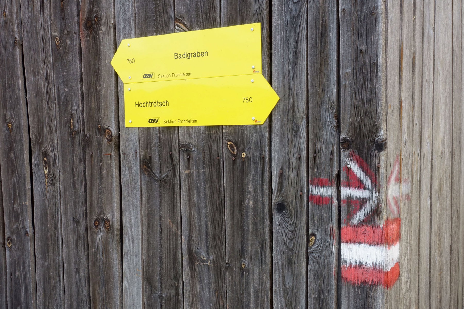 Ich folge der sehr guten Auferbauerschen Beschreibung, wobei ich die Tour in die Gegenrichtung absolviere. Die gesamte Route ist rot markiert und mit ein wenig Aufmerksamkeit findet sich bei jeder Weggabelung eine richtungweisende Markierung, oft auch ein Wegtaferl.