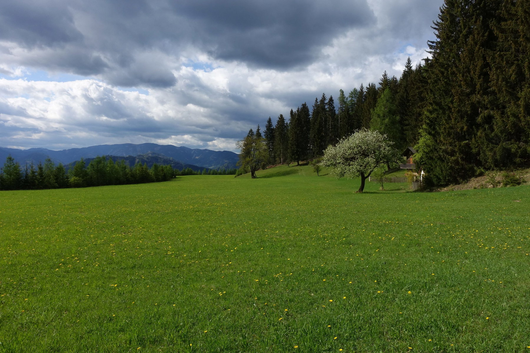 Am Trötschsattel ist es traumhaft schön. Oder wie es die Auferbauers auf den Punkt bringen: „Welch ein Prachtplatz! Sonnseitig, umgeben mit sanft geneigten Almböden!“ Der Blick reicht heute im Norden bis zum noch schneebedeckten Hochschwab, im Süden bis zum slowenischen Bacherngebirge (Pohorje).