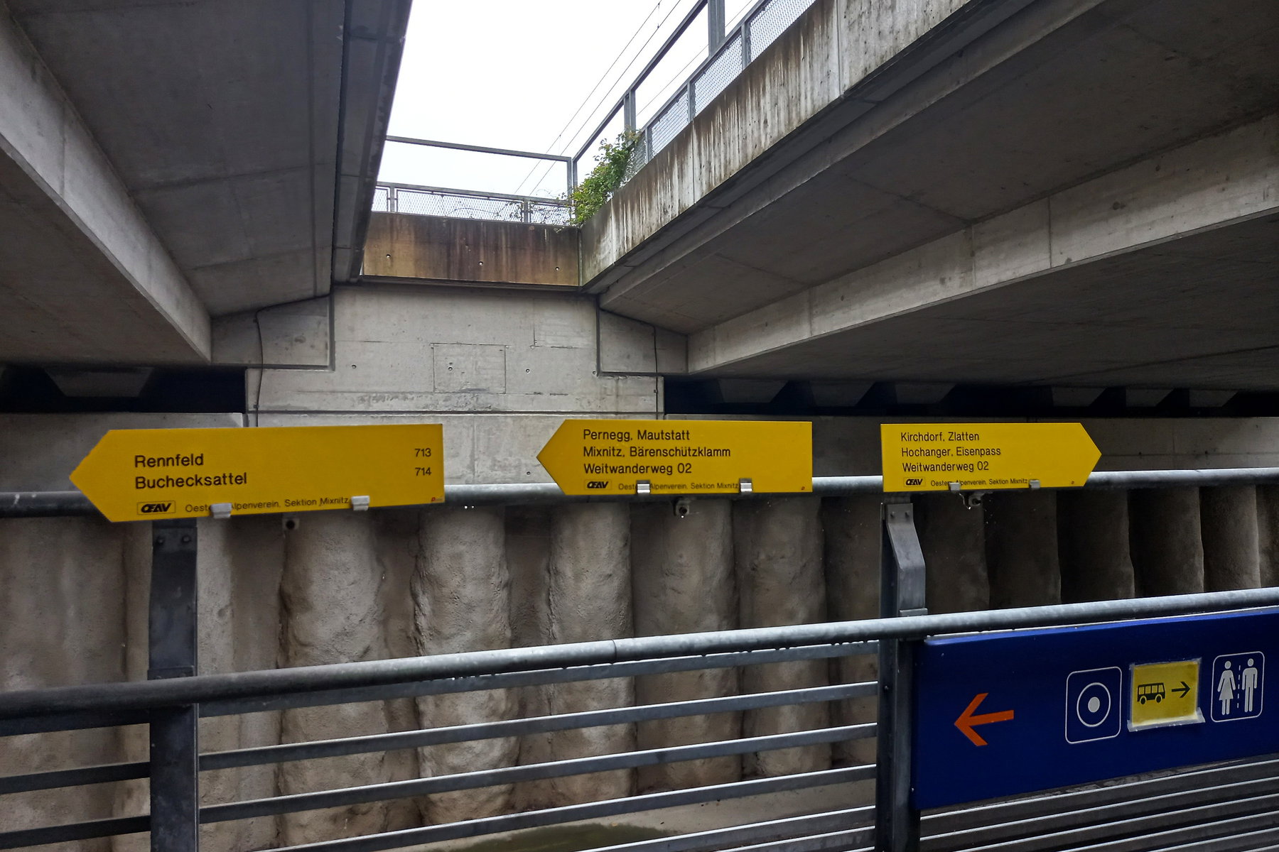 Kurz vor dem Gasthof Himmelwirt treffe ich wieder auf eine Asphaltstraße, der ich bis zum Bahnhof Bruck an der Mur folge. Im neuen Bahnhofscafé lasse ich die Tour noch einmal Revue passieren und warte genießend auf meinen Zug, der mich wieder entspannt nach Hause bringen sollte.