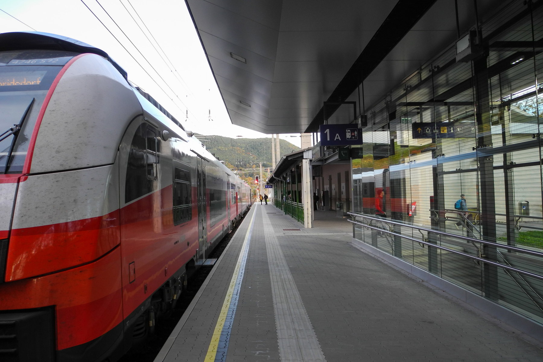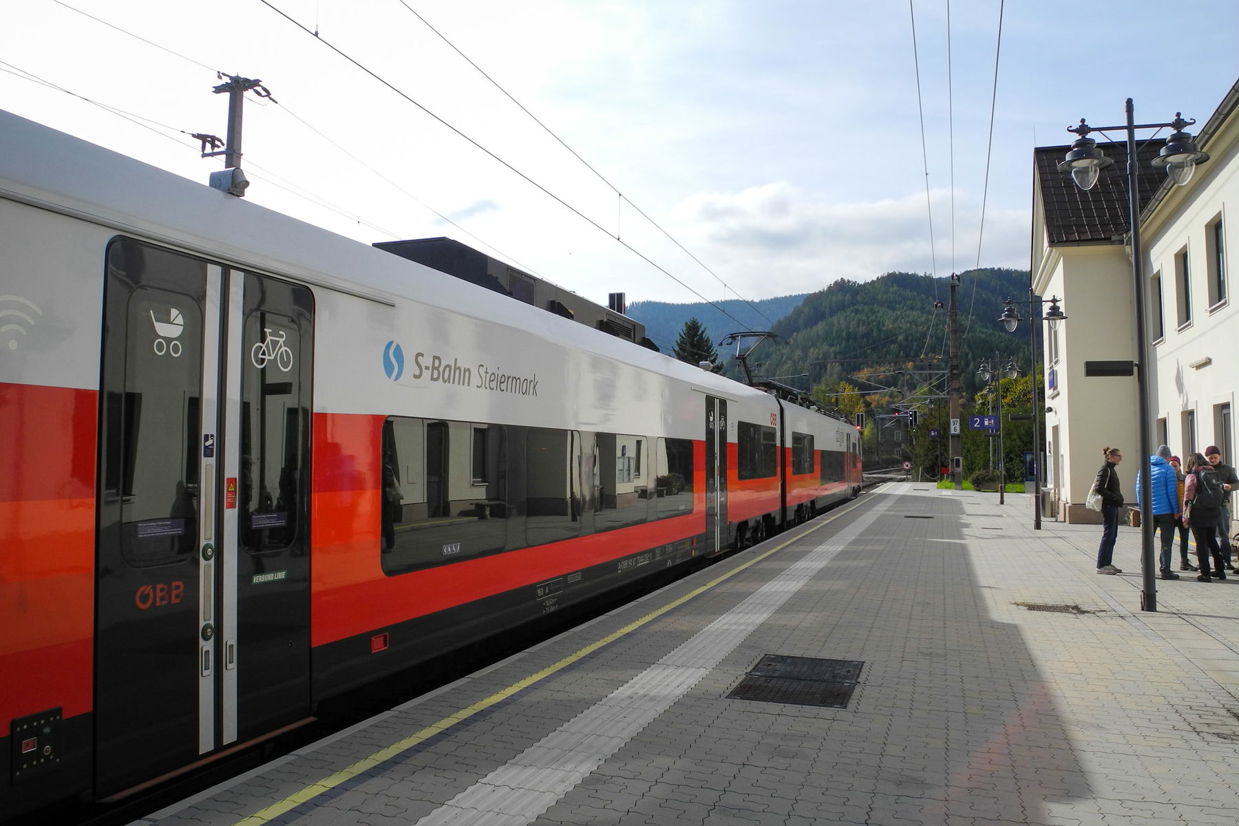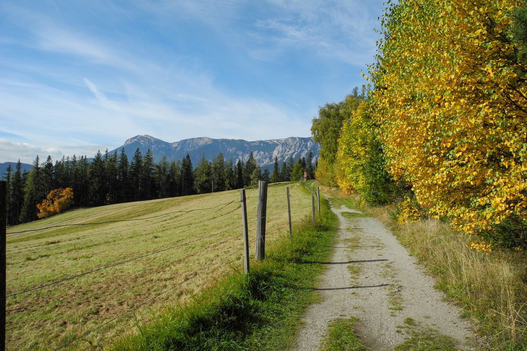 Wir haben ein bisschen länger geschlafen und starten an einem Sonntag Mitte Oktober um 10:30 in Wien Meidling. Der Railjet bringt uns in 25 Minuten nach Wiener Neustadt und dort haben wir Anschluss an den R91, der uns in einer knappen Stunde nach Breitenstein bringt. Die aussichtsreiche Anreise über die romantisch schöne Semmeringstrecke stimmt uns dabei schon ein auf unsere Genusswanderung.