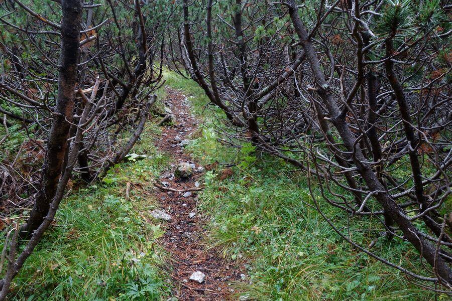 Rückblende: Zwei Tage zuvor bin ich auch schon hier beim Einstieg des Jahn-Steiges gestanden. Nach nächtlichen Regenfällen war der Klettersteig allerdings nass und so disponierte ich vorsichtshalber auf den Ho Chi Minh-Pfad um. Der geheimnisumwitterte Name dieses Steiges spielt auf die Vietcong-Krieger an, die den Amerikanern im Vietnamkrieg zwar waffentechnisch unterlegen waren (wiewohl sie von den Russen unterstützt wurden), wegen ihrer Ortskenntnis im undurchdringlichen Tropenwald letztlich aber die Oberhand behielten. Hier ist es das gleichermaßen undurchdringliche Latschendickicht der Rax-Hochfläche, durch das es für Wissende aber doch ein – sogar sehr bequemes – Hindurchkommen gibt. Und es ist nicht schwer, ein Wissender zu werden, sofern man bei der Dirnbacher Hütte die Augen ein bisserl offen hält. Und wenn man schon in der Gegend ist, sollte man auch einen Blick in den Schlund der – besonders geschützten – Eishöhle werfen.