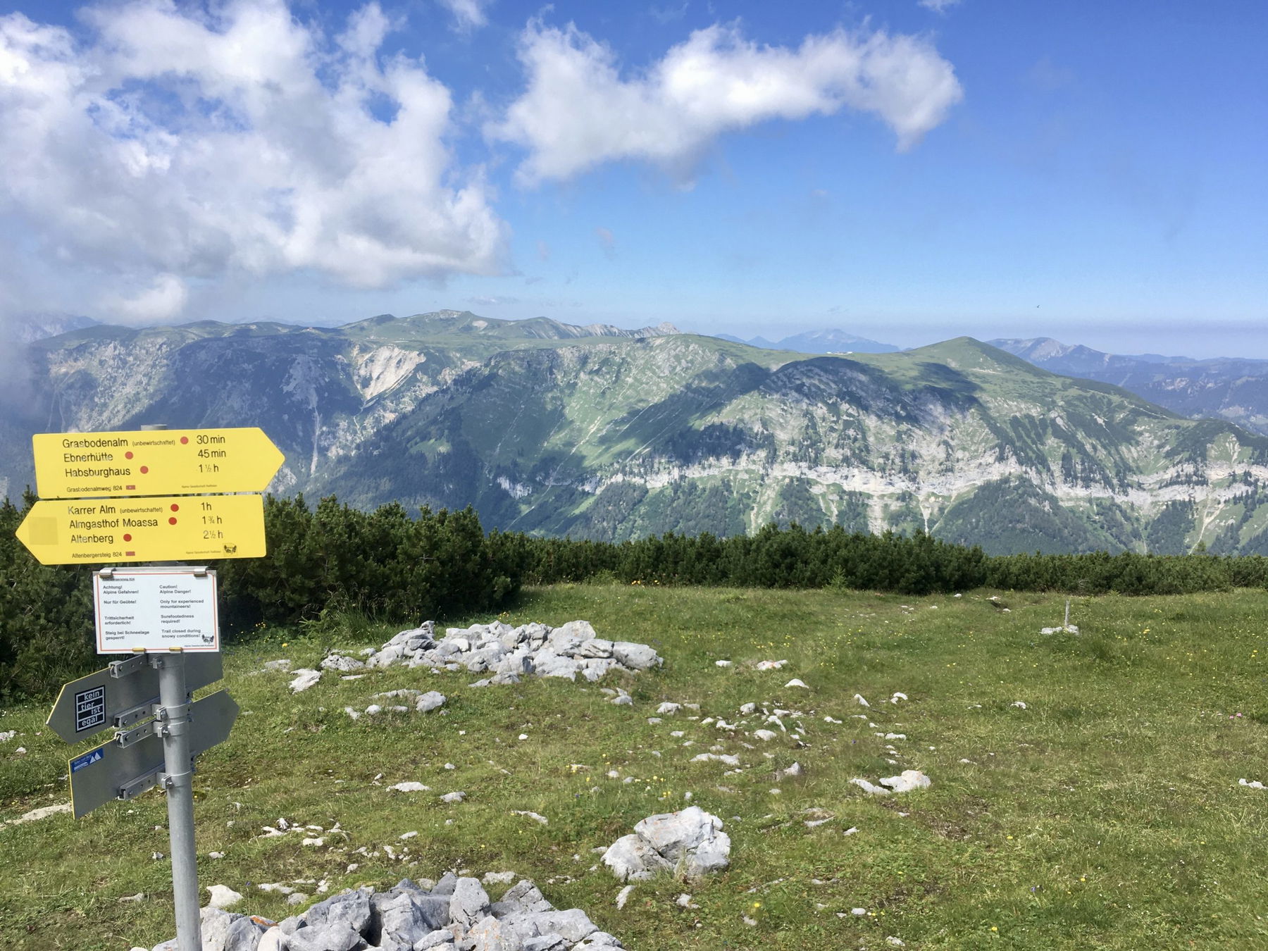 Der Weg über die Karrer Alm und den Altbergsteig war für mich die richtige Wahl. Der hintere Teil der Rax ist wild und zerklüftet, der Steig trotzdem einfach. Empfehlung!