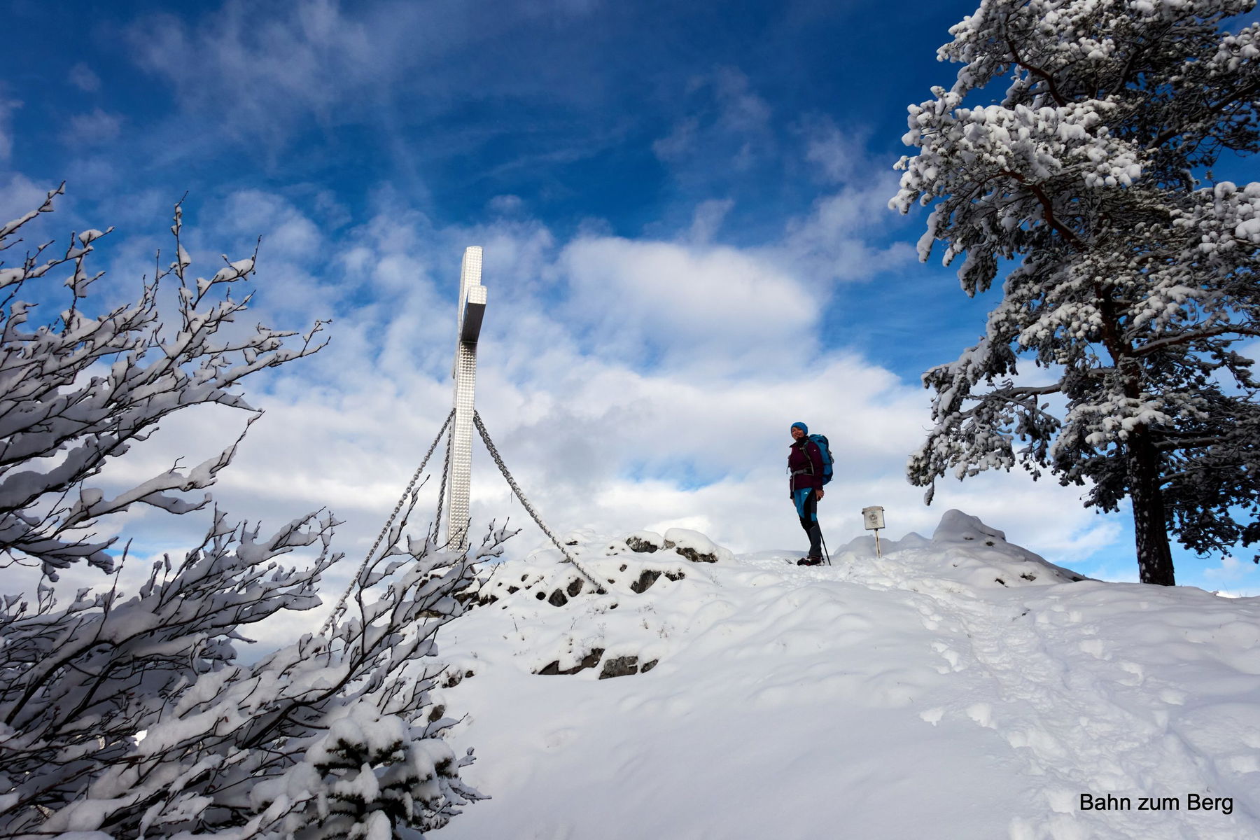 Bis zum Plodererkreuz sind es ziemlich genau 200 Höhenmeter, die wir zurücklegen müssen. Wir brauchen 45 Minuten dafür.