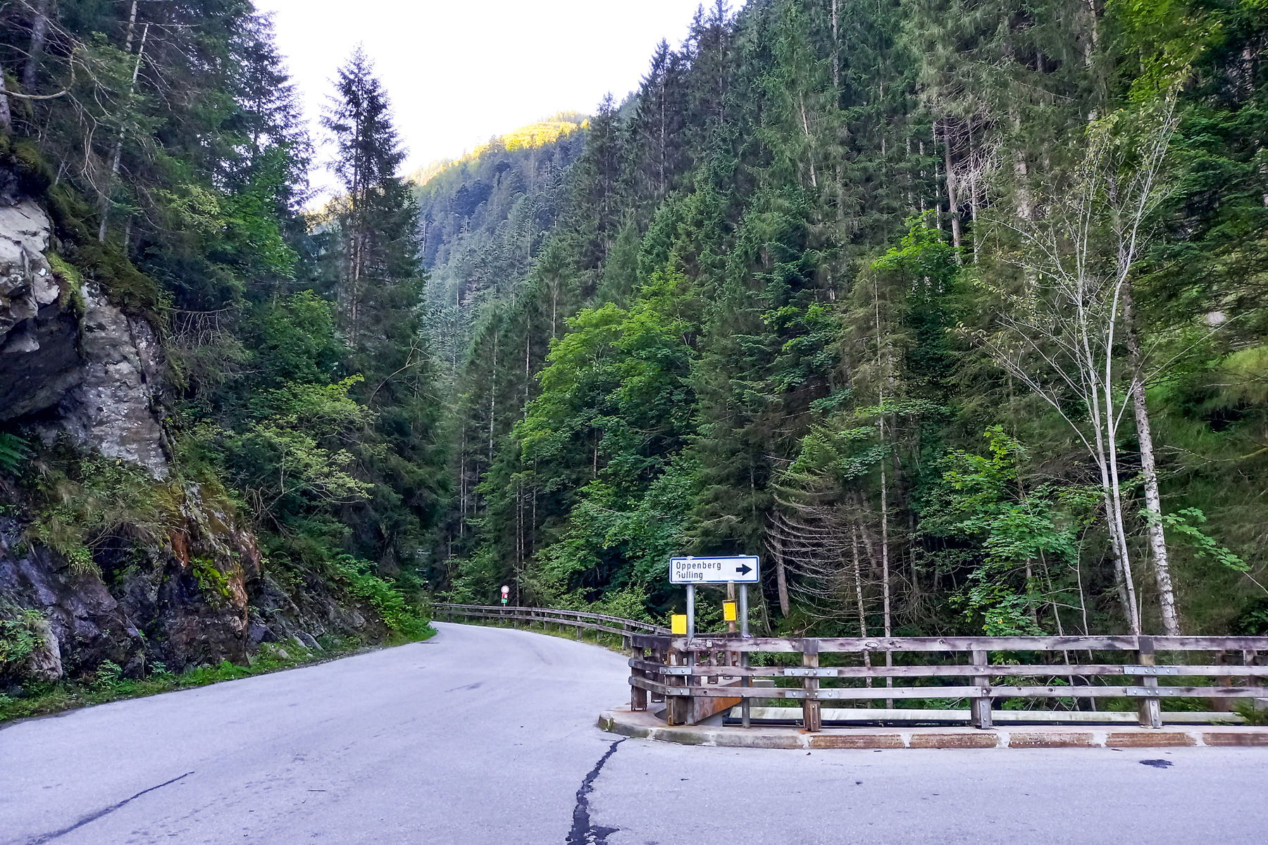 Nach etwa einer Stunde erreiche ich Oppenberg und muss noch drei Kilometer ins Gullingtal radeln, bis ich den Ausgangspunkt meiner Wanderung erreiche. Direkt an der Straße beginnt die Markierung, die mir den Weg zur Seekoppe weist.