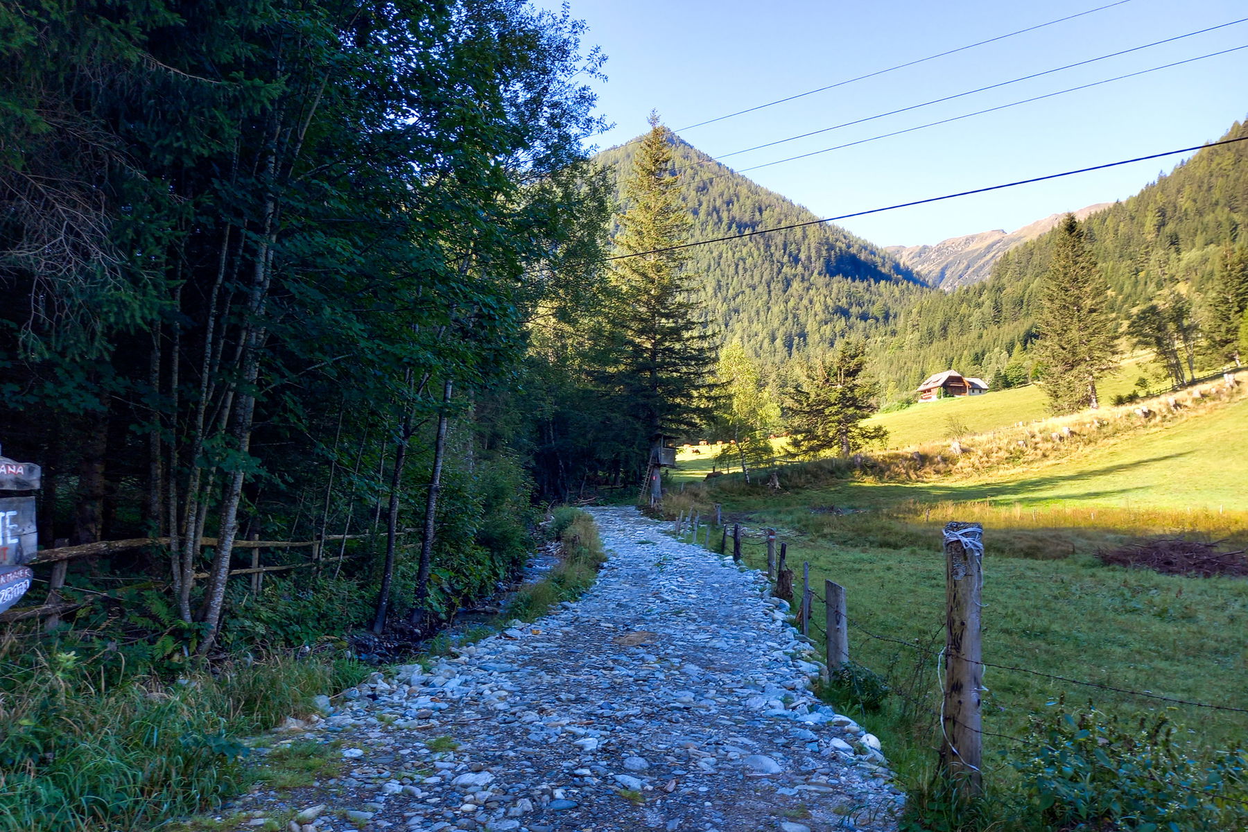 Über einen Fahrweg wandere ich in das Riednertal hinein, teilweise entlang des Riednerbaches, den ich mehrmals überqueren muss.
