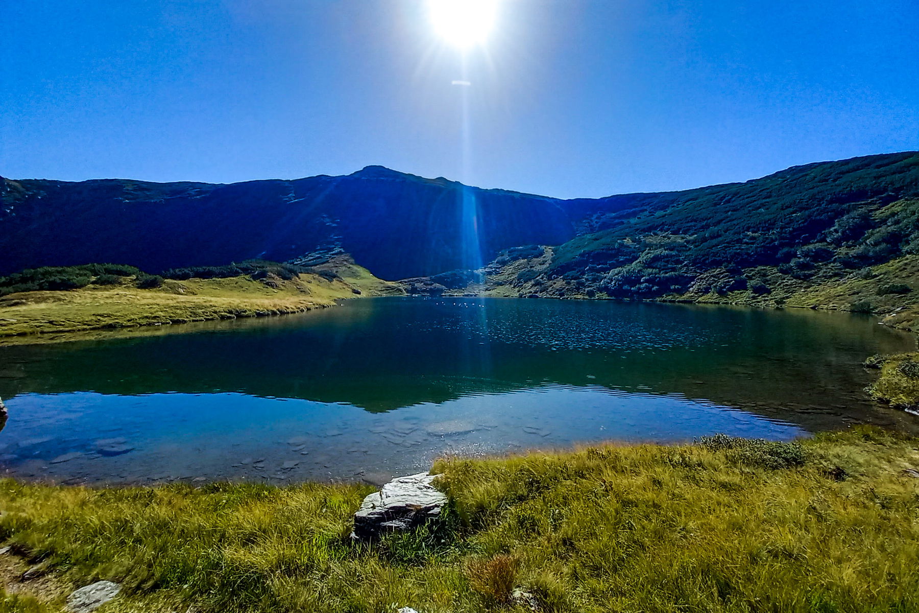 Nach einem kurzen Anstieg über ein Kar erreiche ich schließlich den idyllisch gelegenen Riednersee.