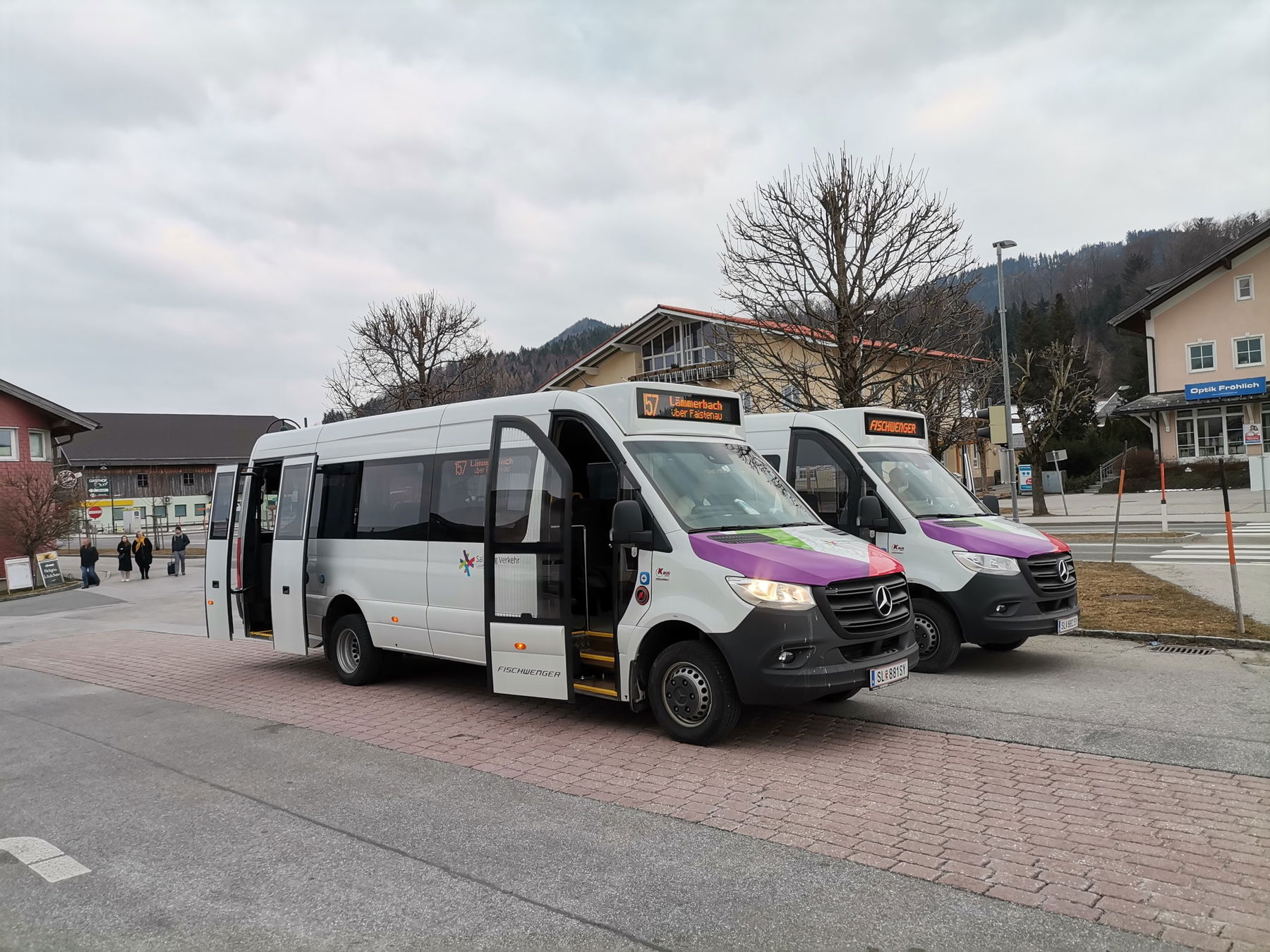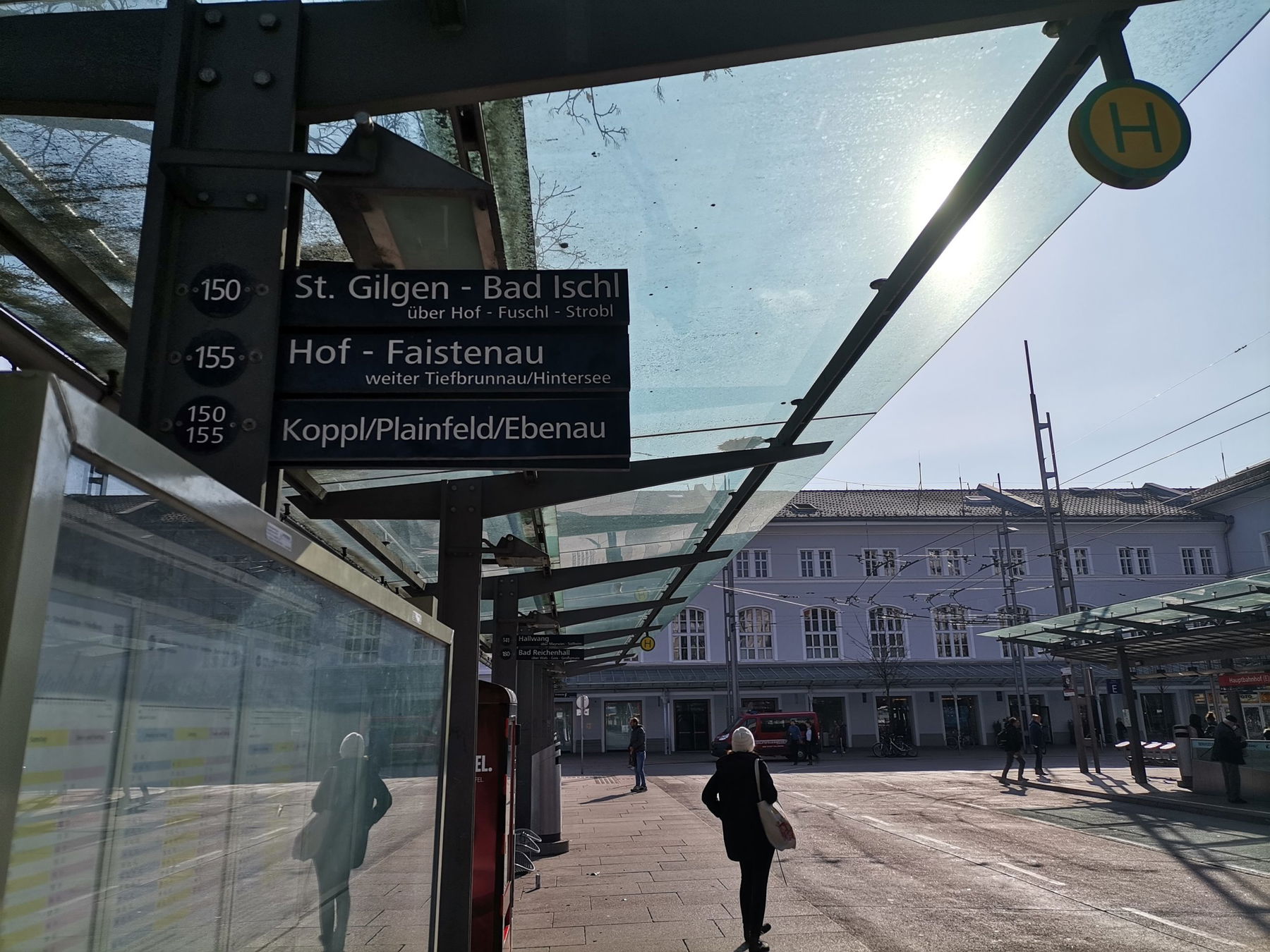 Am Salzburger Hauptbahnhof steige ich in den Bus und fahre bis Hof bei Salzburg – Ortsmitte – hier muss ich umsteigen in den Kleinbus nach Faistenau. Aber nur weil Sonntag ist. Montag bis Samstag geht es auch direkt ohne Umsteigen. Die Umsteigezeit zwischen großem und kleinen Bus verbringe ich bei einem guten Kaffee im Hotel Post gegenüber der Busstation.