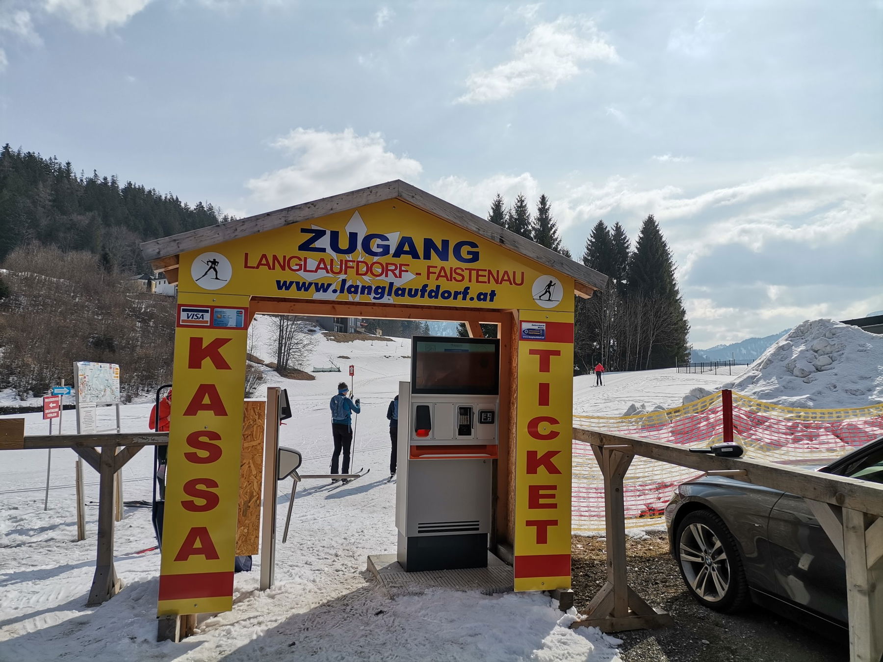 Mit dem Linienbus ins Langlaufdorf Faistenau, Ski-Verleih, Loipeneinstieg und ein gutes Gasthaus gleich bei der Haltestelle. So wünsche ich mir das. Deshalb nehme ich den ziemlich langen Weg aus Wien in Kauf.