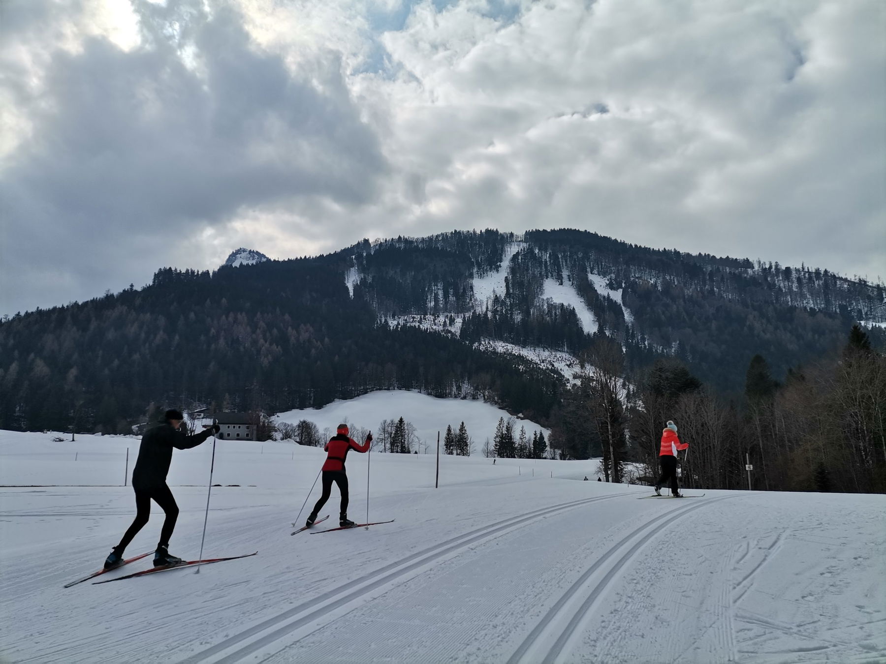 Langsam bringt mich die Loipe zurück nach Faistenau, aber leider nicht zum Loipeneinstieg, an dem fahre ich vorbei. Sicher nur, weil ich die ganze Zeit an eine Kaspressknödelsuppe denke. Bin schon ordentlich hungrig.