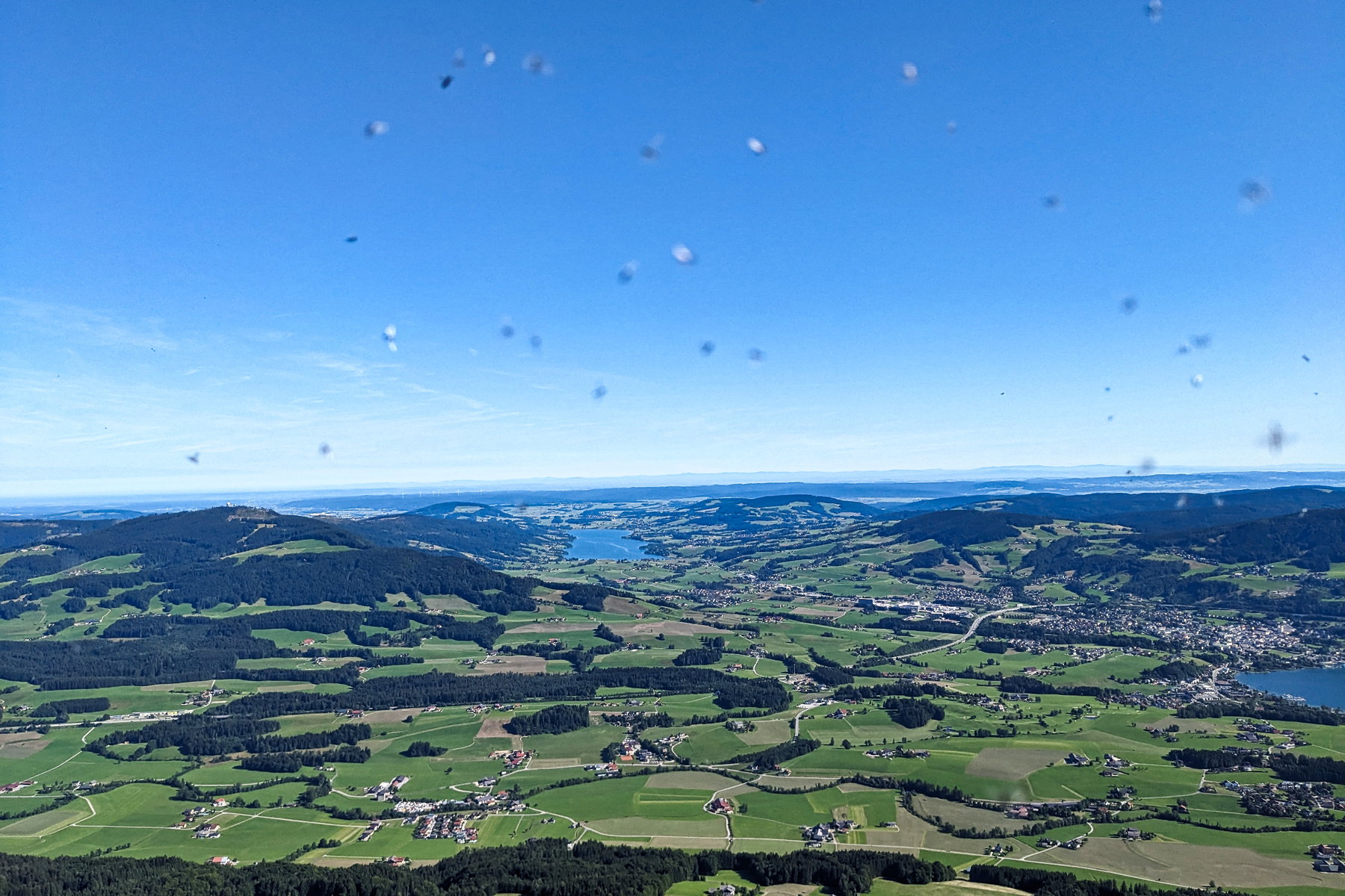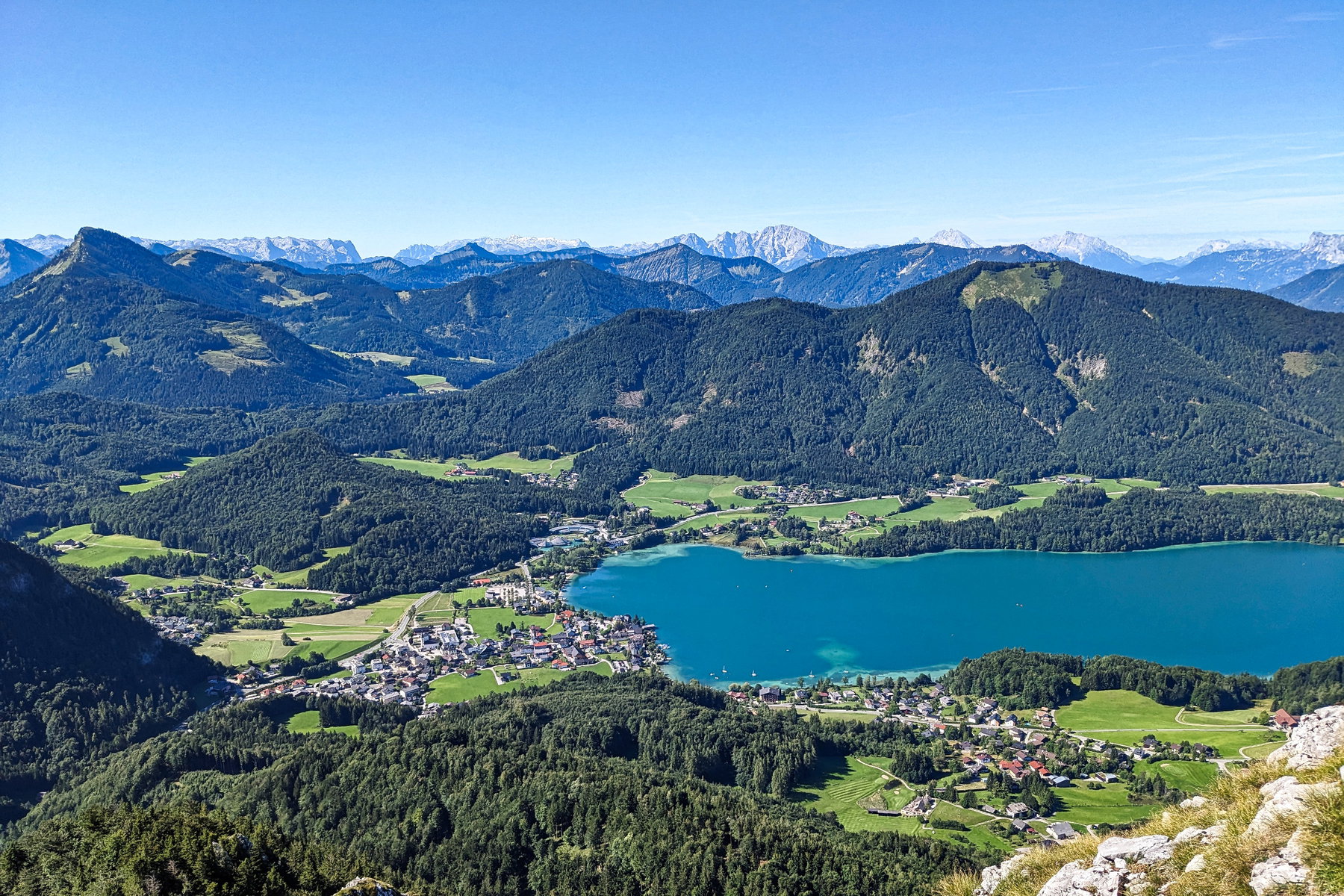 Fuschler See, Irrsee, Mondsee, Attersee, Wolfgangsee, unzählige Gipfel des Salzkammergutes, Gipfelkreuz, Rentnerbankerl, Maibaum, Insekten – alles am Gipfel erlebbar. Ein Rundumerlebnis!