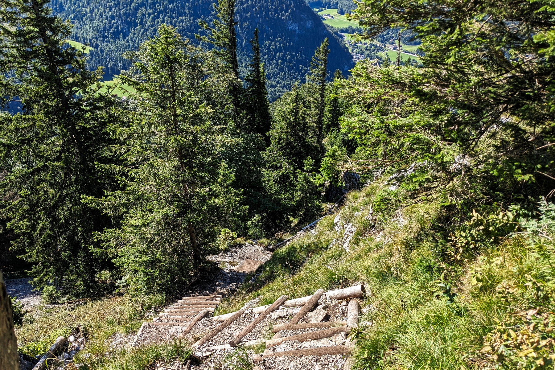 Stufen, Wurzeln, Drahtseile, Steine, Serpentinen, Trittstufen, Ausblick – alles dabei und in einem super Zustand. Nur anstrengend.