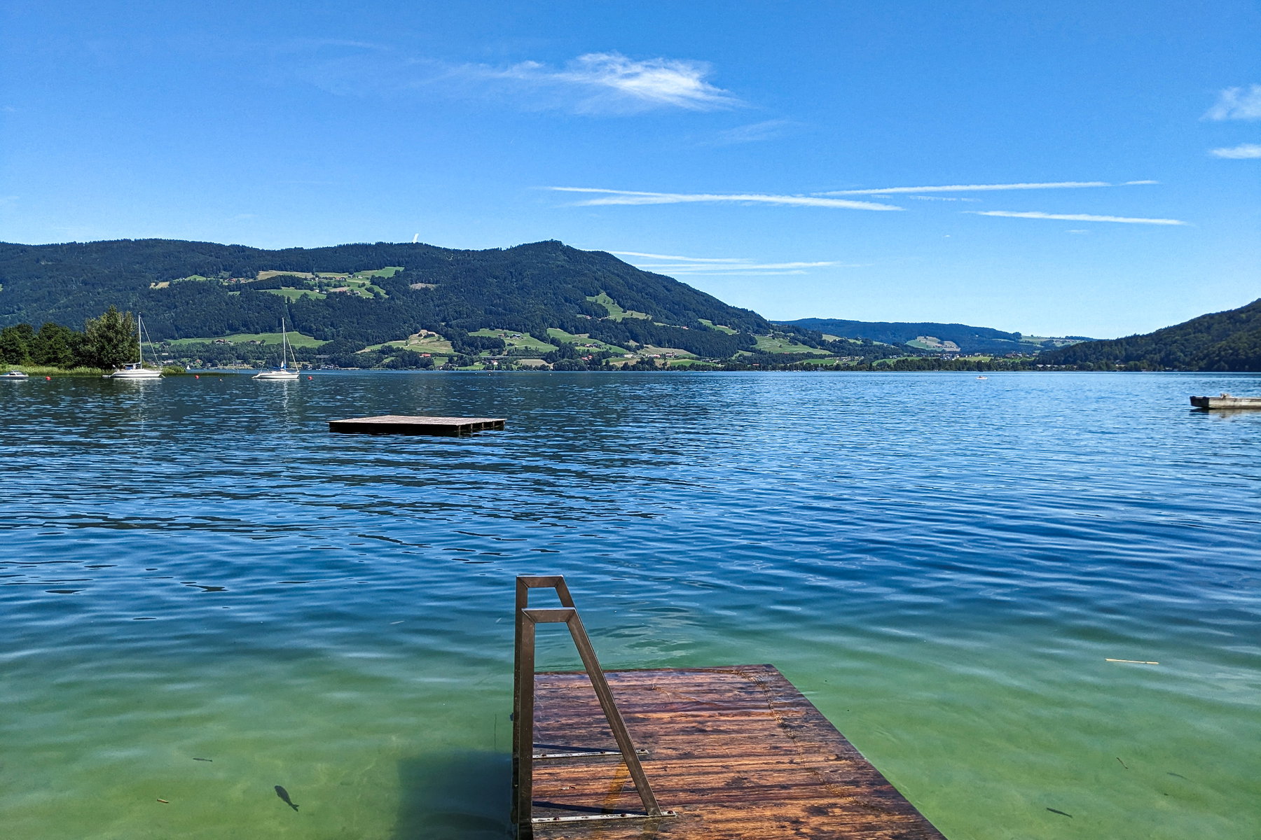 Traumhaftes Tourenende: Badeplatz (samt Imbiss) und sonnige Bushaltestelle mit Ausblick. Auch die Drachenwand wird früher oder später erklommen! Fotos: Thomas Obermair