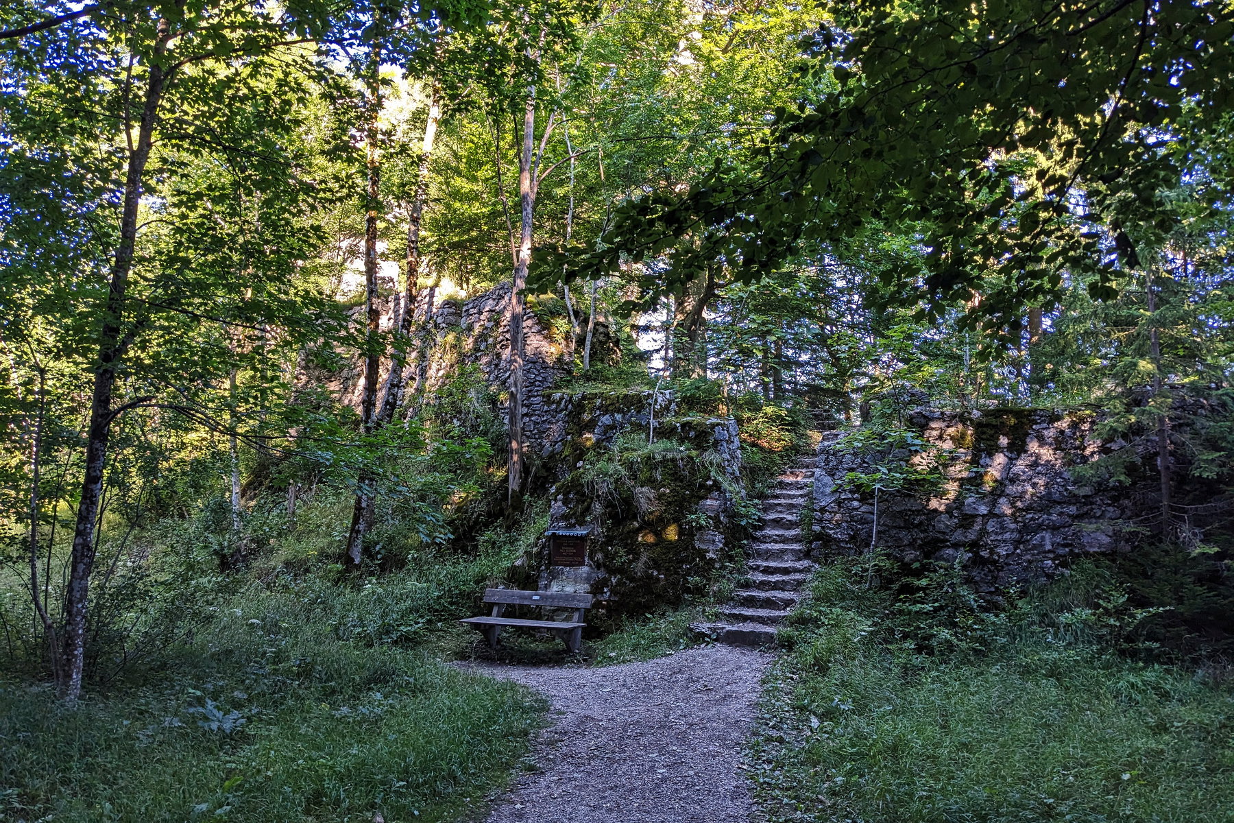 Dass der Gipfel und die vorgelagerte Ruine Wartenfels ein wahres Schmankerl sind, ist keine Neuigkeit. Einen Teil des Weges teilt man sich deshalb mit vielen anderen Frischluftliebenden. In den Genuss des einsamen Zustiegs über herrliche Wiesen und durch schöne Wälder kommen nur jene, die auf neuen Wegen vom Talboden aufsteigen. Beim Start von der Bushaltestelle merkt man allerdings schnell, dass die “neuen” Wege eigentlich die alten sind – immer schon gut markiert.