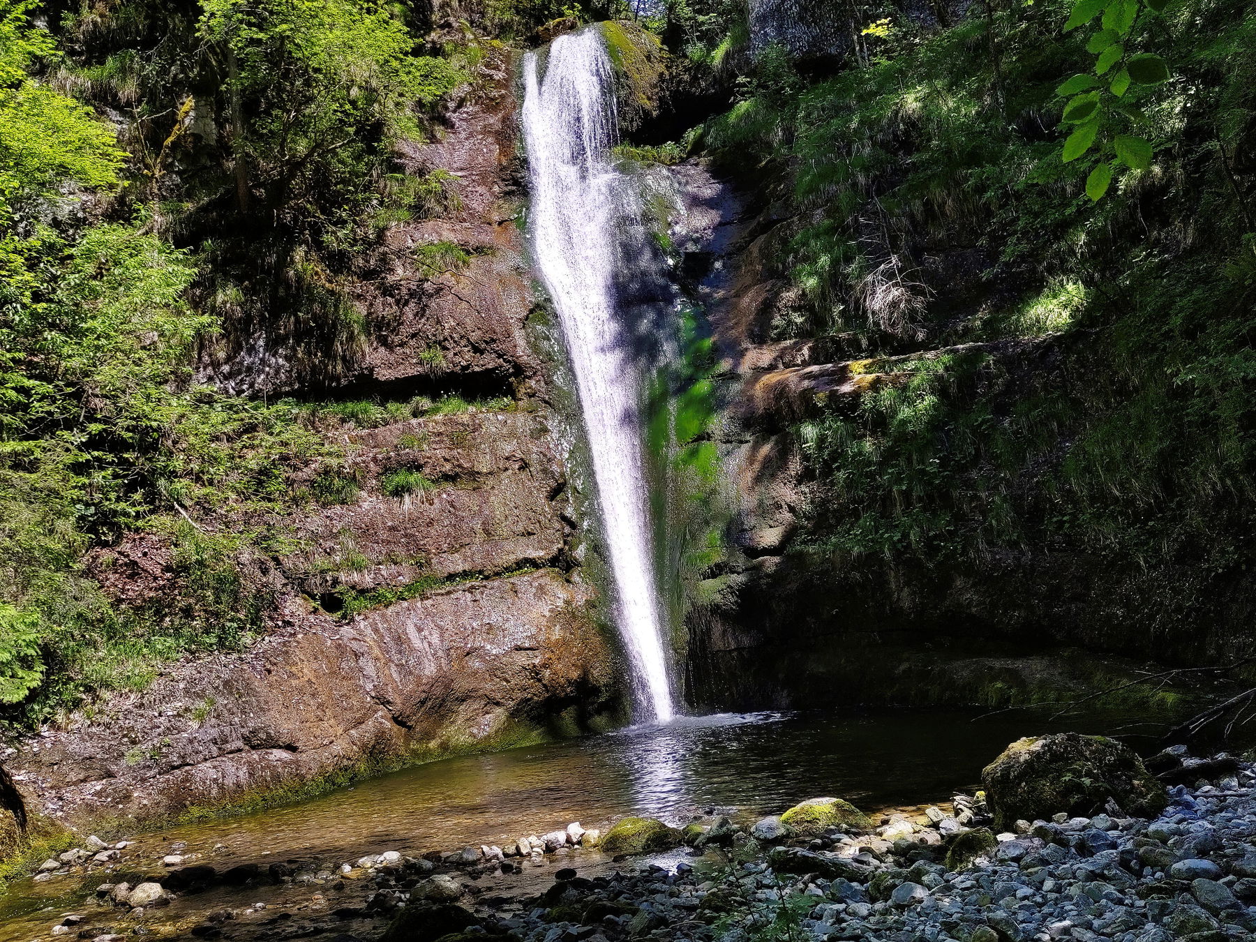 Dem aufmerksamen Wanderer entgeht nicht, wie aufwändig der Steig einst angelegt wurde: Das letzte Stück hinunter zum je vor die Augen tretenden wunderschönen Wasserfall (bis hierher kaum 10 Minuten)