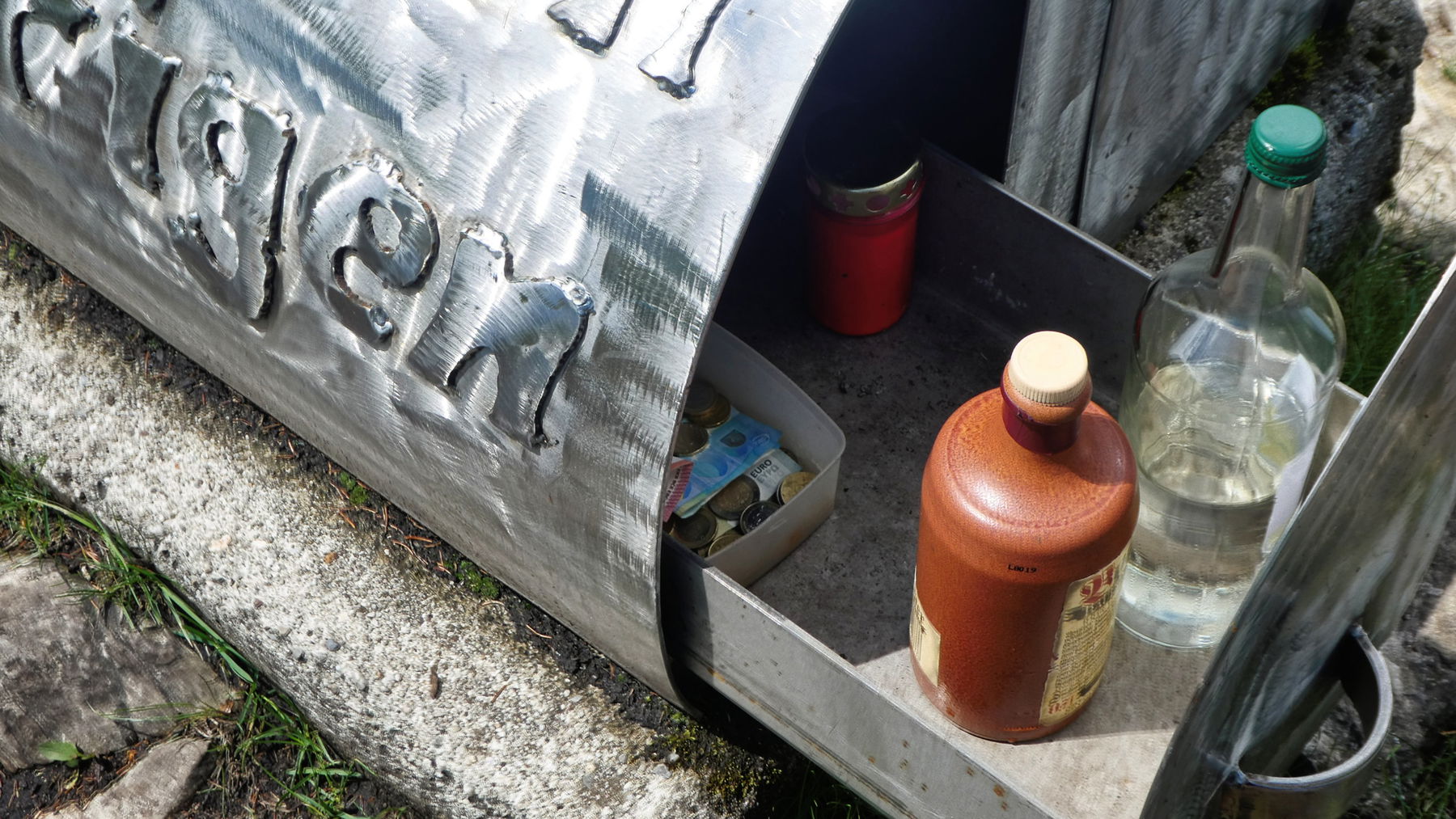 Der Weg führt über das Moser-Denkmal (ein Zeuge trauriger Auswüchse der Wilderei) auf die Grünaualm. Geborgen eingebettet liegt die schön gezimmerte Hütte da (Trog mit Quelle).
