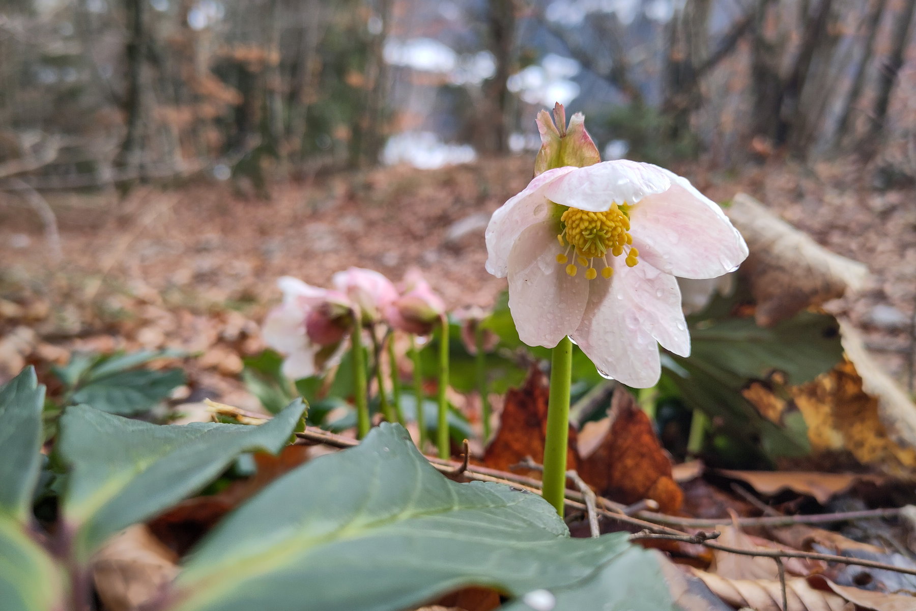 Die zart-rosa Schneerosen-Variante am Wegesrand. Foto: Karl Plohovich