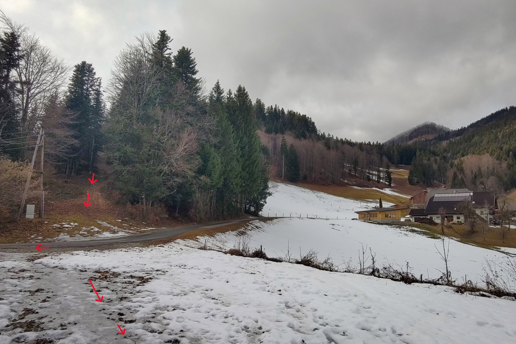 Von hier sind es noch etwa 250 Höhenmeter ins Tal zur Bushaltestelle (ca. ½ bis max. ¾ Stunde), meist auf guten Zugwegen oberhalb des Gehöfts Pillstein;
