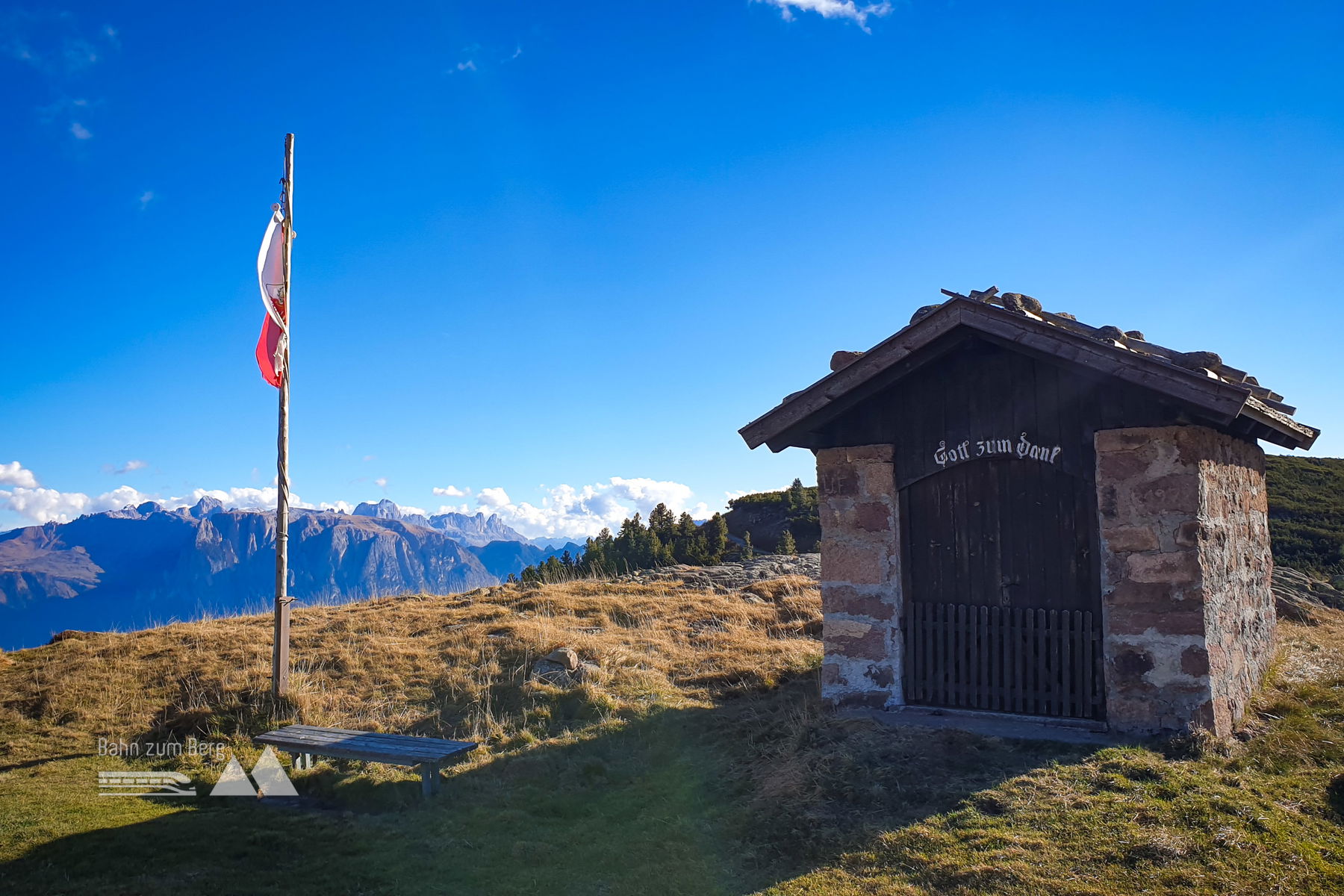 All das siehst du vom Rittner Horn aus. Der Berg selber ist wirklich nicht die schönste Schönheit. Dazu eine klaffende Wunde eines Wasserbeckens für Beschneiungsanlagen. Aber der Ausblick ist der Wahnsinn. Und die Alpenvereinshütte, das Rittner Horn Schutzhaus, ist eine der am längsten geöffneten über 2.000 Meter. Auch jetzt noch. Mit sympathischen Wirtsleuten, gemütlicher Stube und guter Küche! Gemütliche & günstige Zimmerlager und feine Absacker-Schnapserl gibts auch.