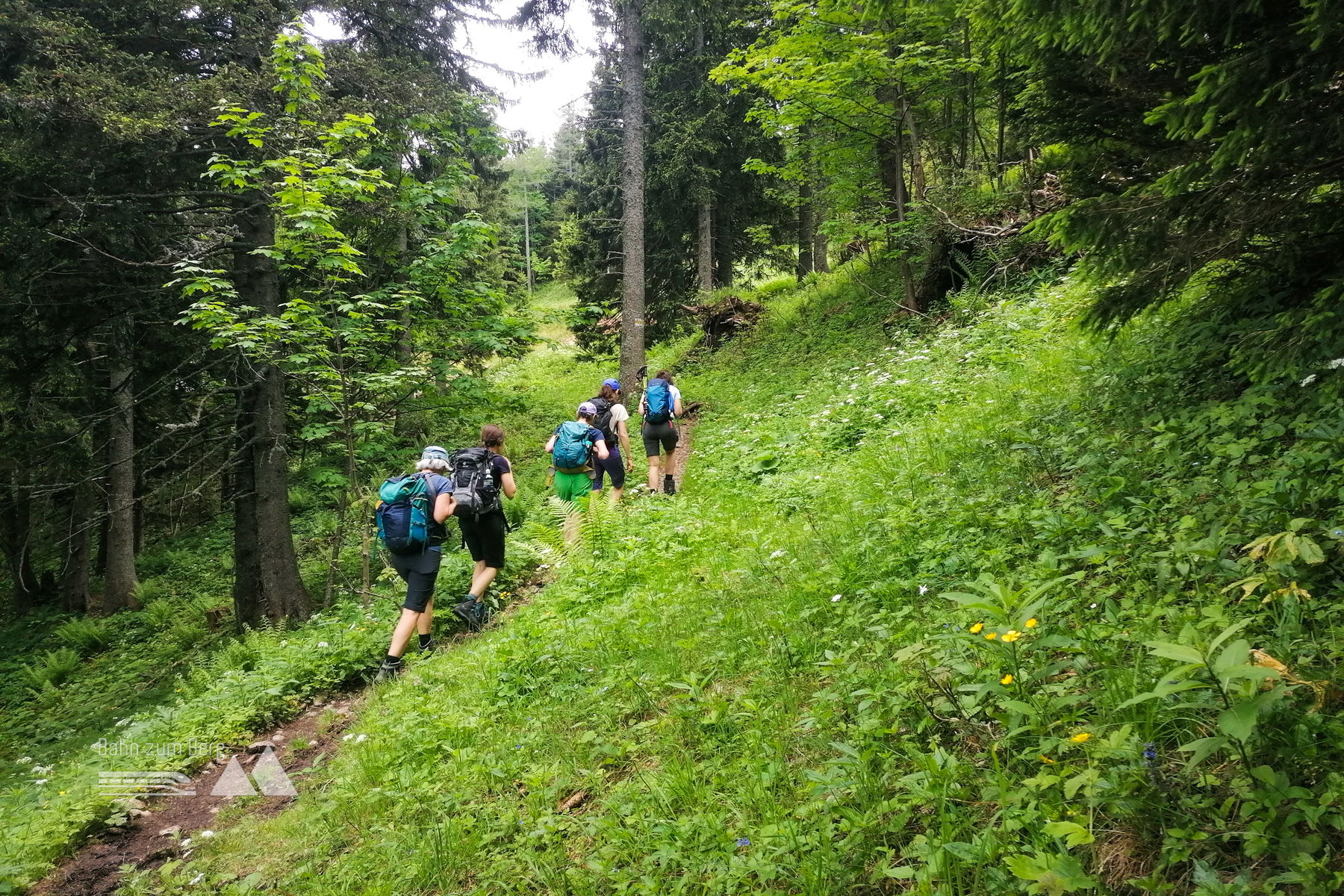 Wir einigen uns schon beim Start darauf, dass wir nicht alle im selben Tempo gehen und ab der Kienthaler Hütte werden sich unsere Wege auch trennen. Einige Mitglieder haben gesundheitliche Probleme hinter sich und sind am Regenerieren, sie wollen wir auf keinen Fall stressen. Stetig geht’s bergauf und – wie das bei BzB-Mitgliederwanderungen so ist – es wird fröhlich geplaudert.