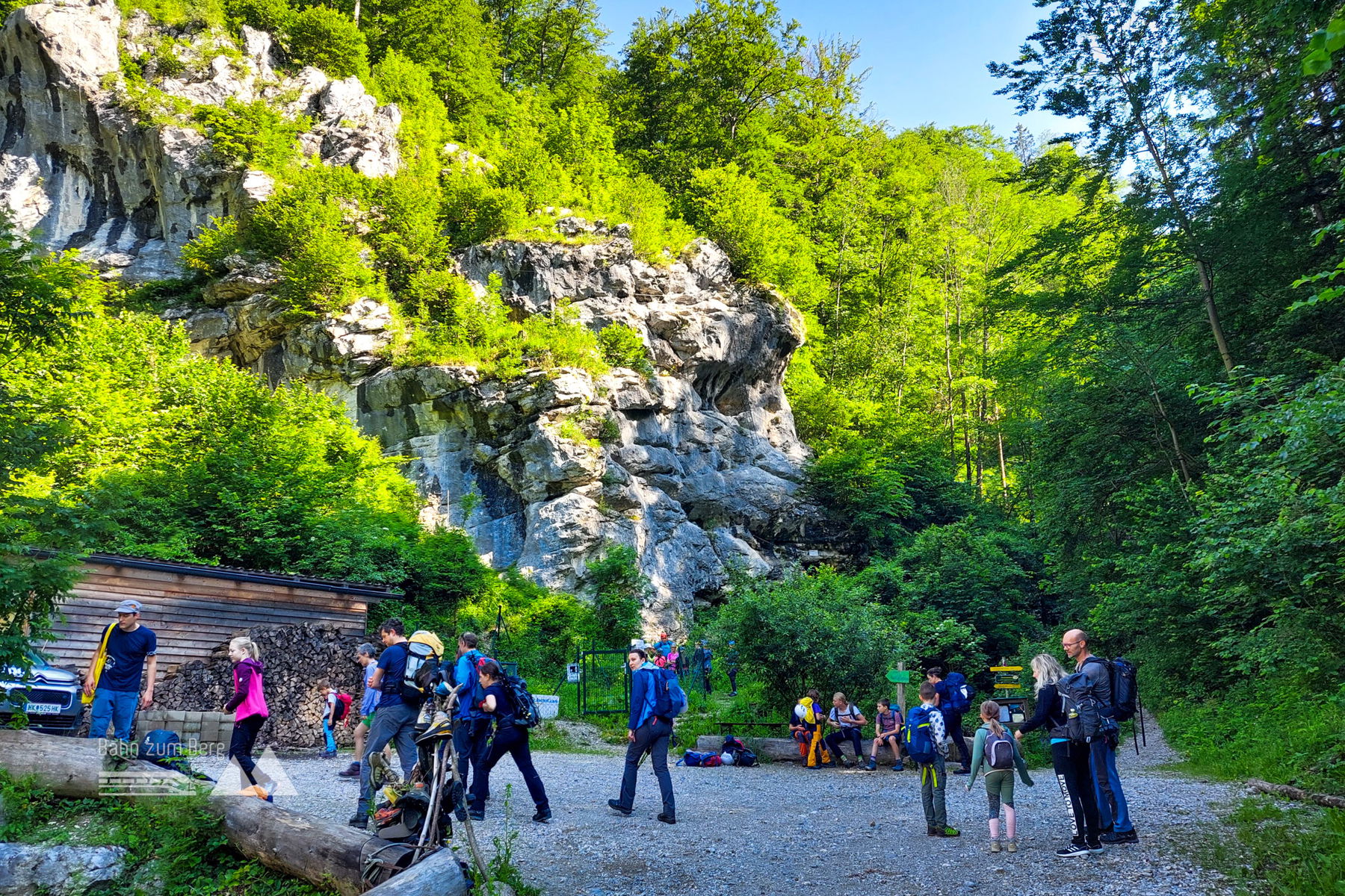 Der Ort für die Mitgliederwanderung steht schon seit einer gefühlten Ewigkeit auf meiner Wander-Bucketlist: die Weichtalklamm. Die anderen finden die Idee fein, heiß ist es auch und die Klamm verspricht Schatten und Abwechslung. So starten wir am 8. Juni 2024 zu neunt (!) bei der Bushaltestelle „Kaiserbrunn Weichtalhaus“. Neun topmotivierte BzB-Mitglieder, teilweise sogar aus Graz angereist. Uns kann nichts aufhalten!