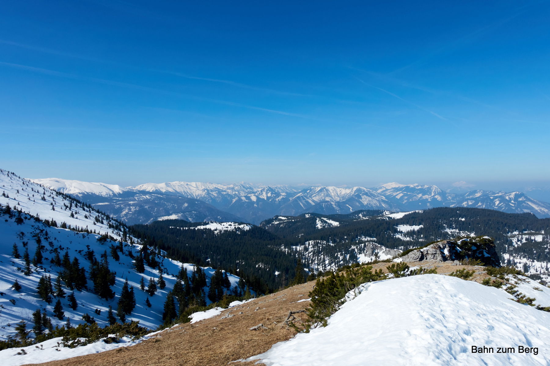 Im Prinzip gäbe es mehrere Möglichkeiten des Abstiegs. Im Winter hängt die Wahl des Abstiegs meiner Meinung nach davon ab, wieviel Schnee bis zu welcher Seehöhe liegt. Ein Abstieg entlang der Schneebergbahn bis nach Puchberg zum Bahnhof ist schön, aber halt weit.