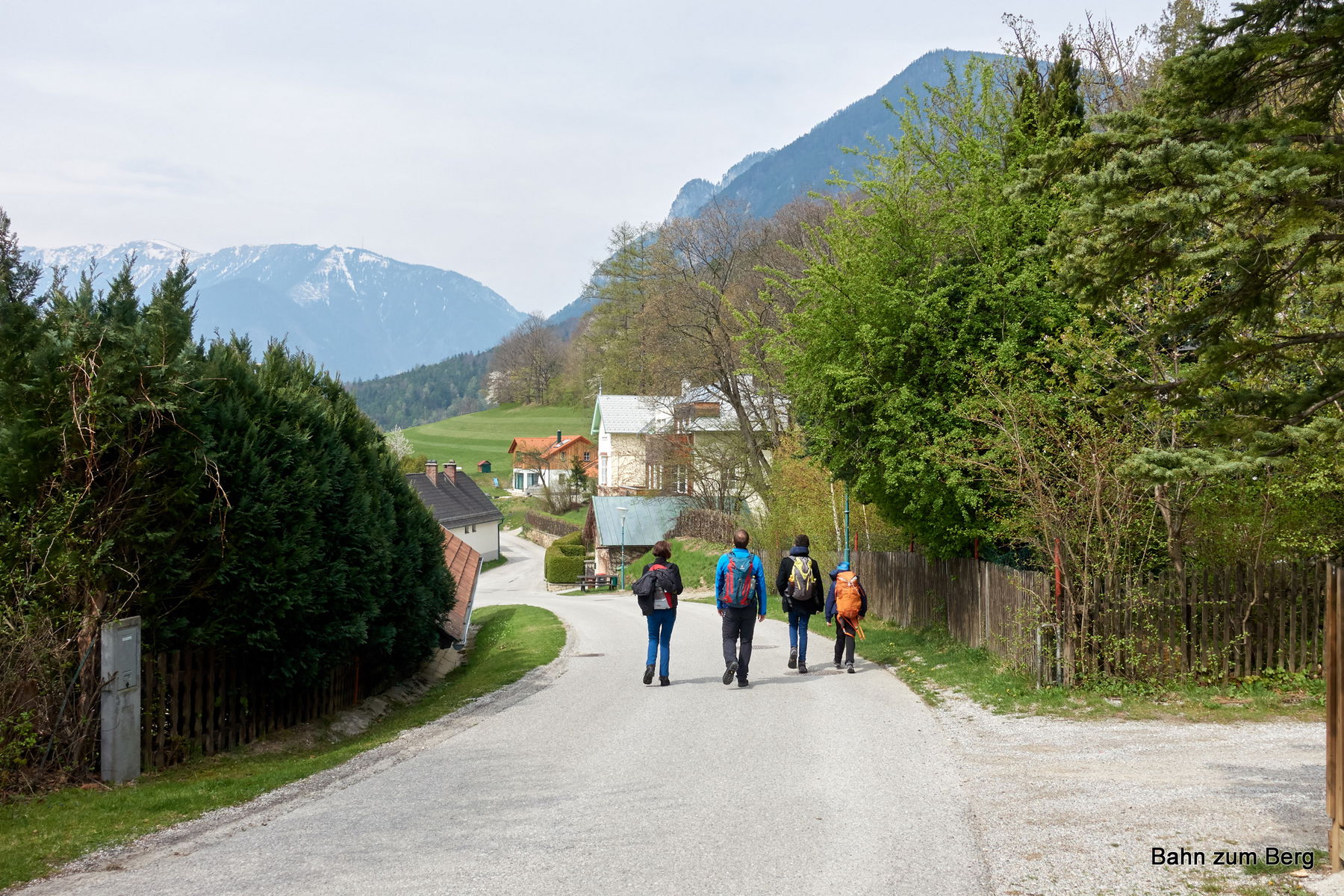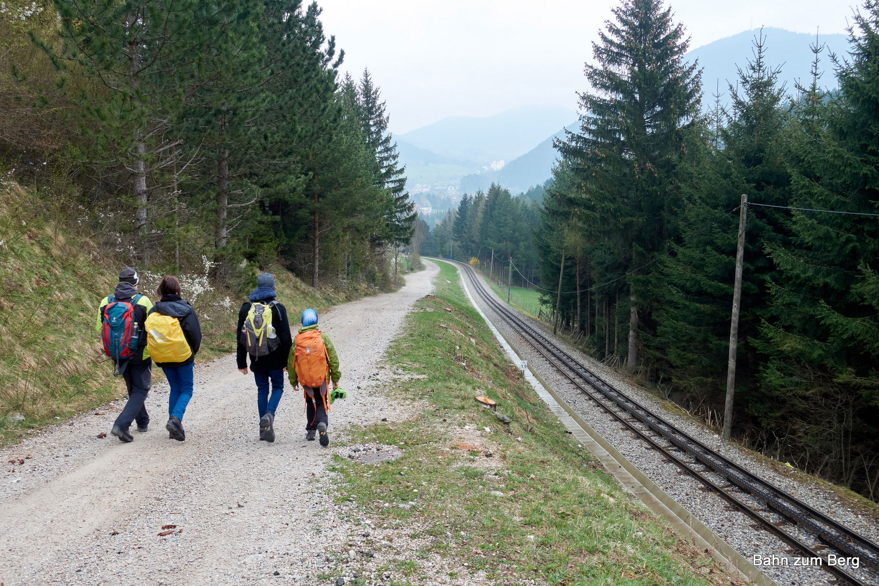Unser Tagesziel für heute ist der Bahnhof Puchberg am Schneeberg. Wir wollen entlang der Schienen der Salamanderbahn zum Bahnhof gehen.