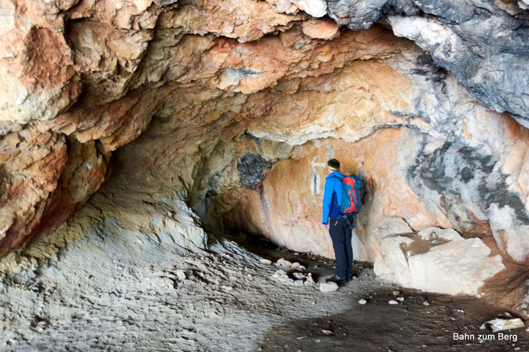 In den Felswänden am Weg sind immer wieder kleine Höhlen, die neugierige und verspielte (Kinder) zum Reinschauen und -kriechen einladen und damit den Aufstieg entsprechend abwechslungsreich machen.