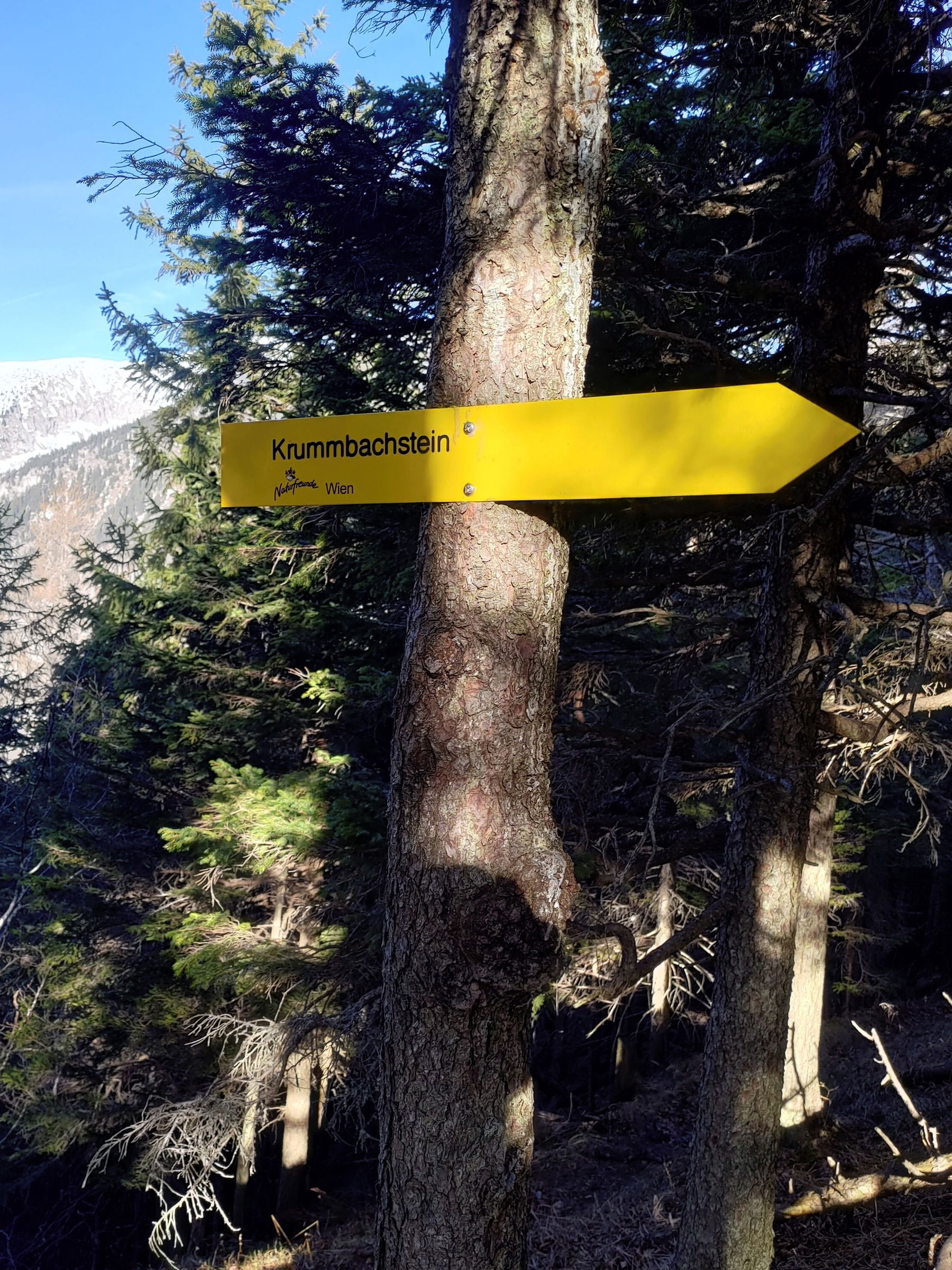 Info: Wir folgen den Schildern in Richtung Blickplatz Elisabethkirche, Blickplatz Klosterwappen, Edelweißhütte (Etappenziele Wiener Alpenbogen), der Krummbachstein ist nur sporadisch angeschrieben!
