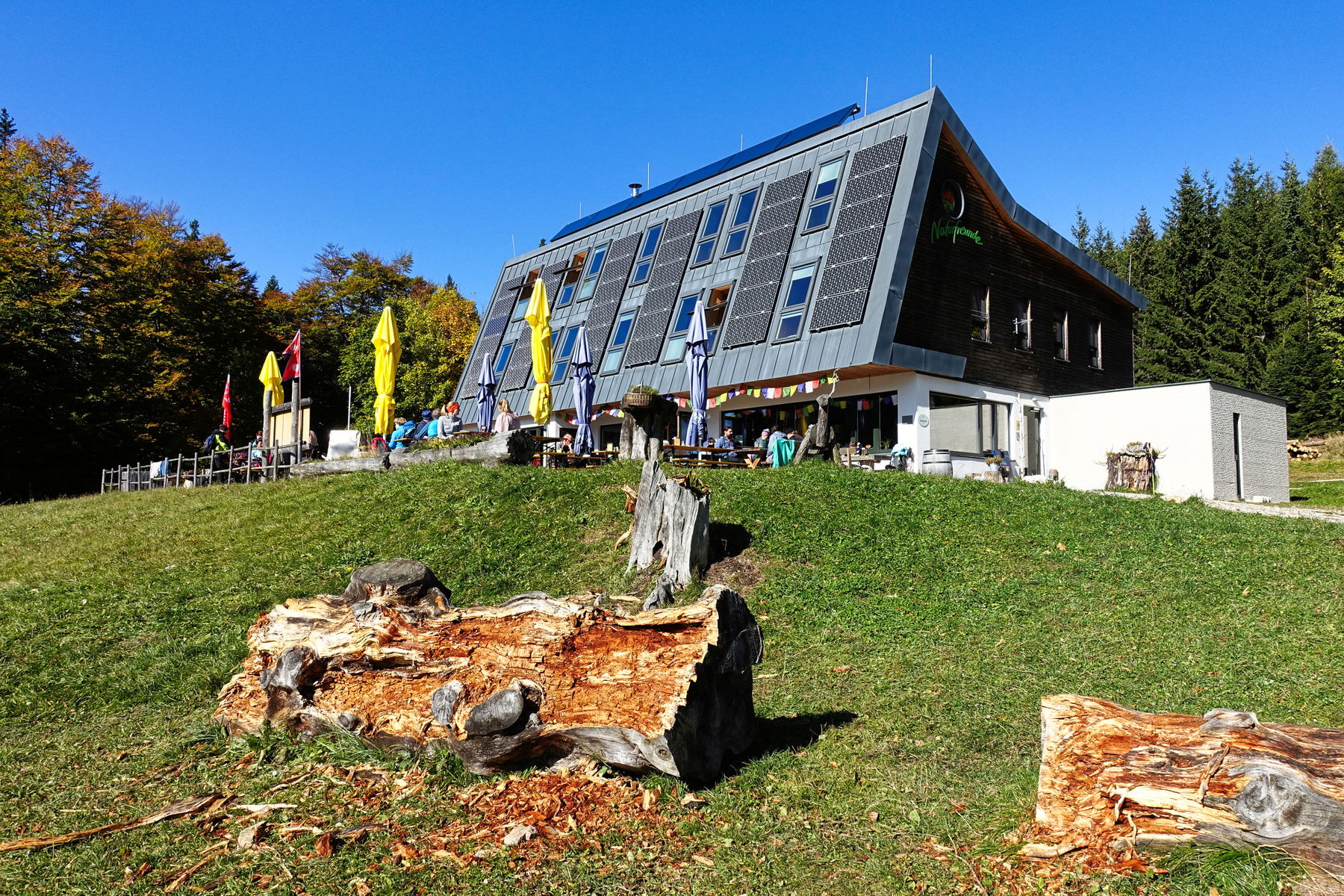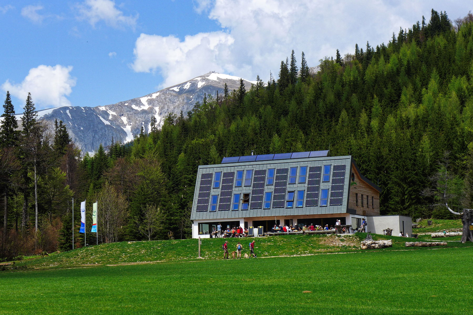 Nun mit roter Markierung die Gehrichtung beibehaltend genau nach Osten zur Bilekalm und zur nahen Ternitzer Hütte. Oberhalb dieser Richtung Hengsthütte hinausqueren zur Zahnradbahn und ihrer Trasse folgend zur Hengsthütte hinab.