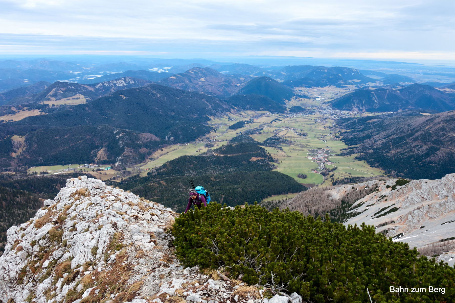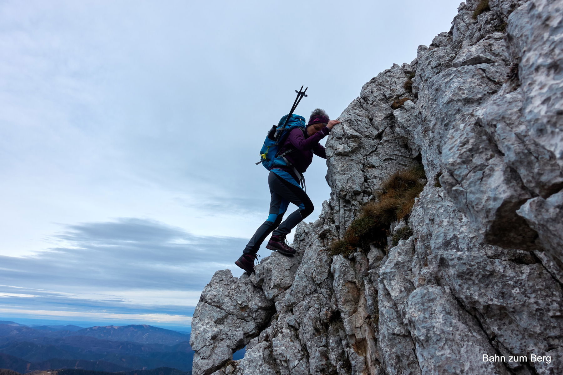 Der Novembergrat ist ein schöner Aufstieg im Schwierigkeitsgrad 1+ auf den Schneeberg. Außer man versteigt sich. Dann ist es schwieriger.