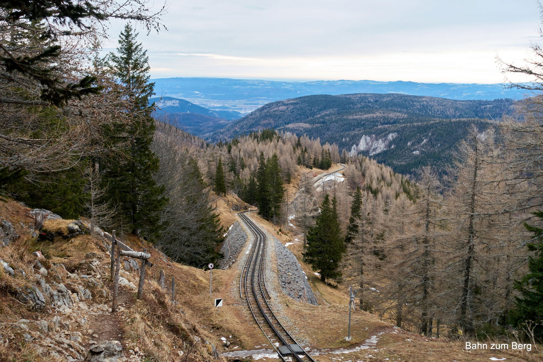 Ab der Station Baumgartner ist der Zahnradbahnweg durchgängig ein Schotterweg. Das ist jetzt nicht so wahnsinnig aufregend – andererseits hatten wir am Novembergrat heute schon genug Aufregung.