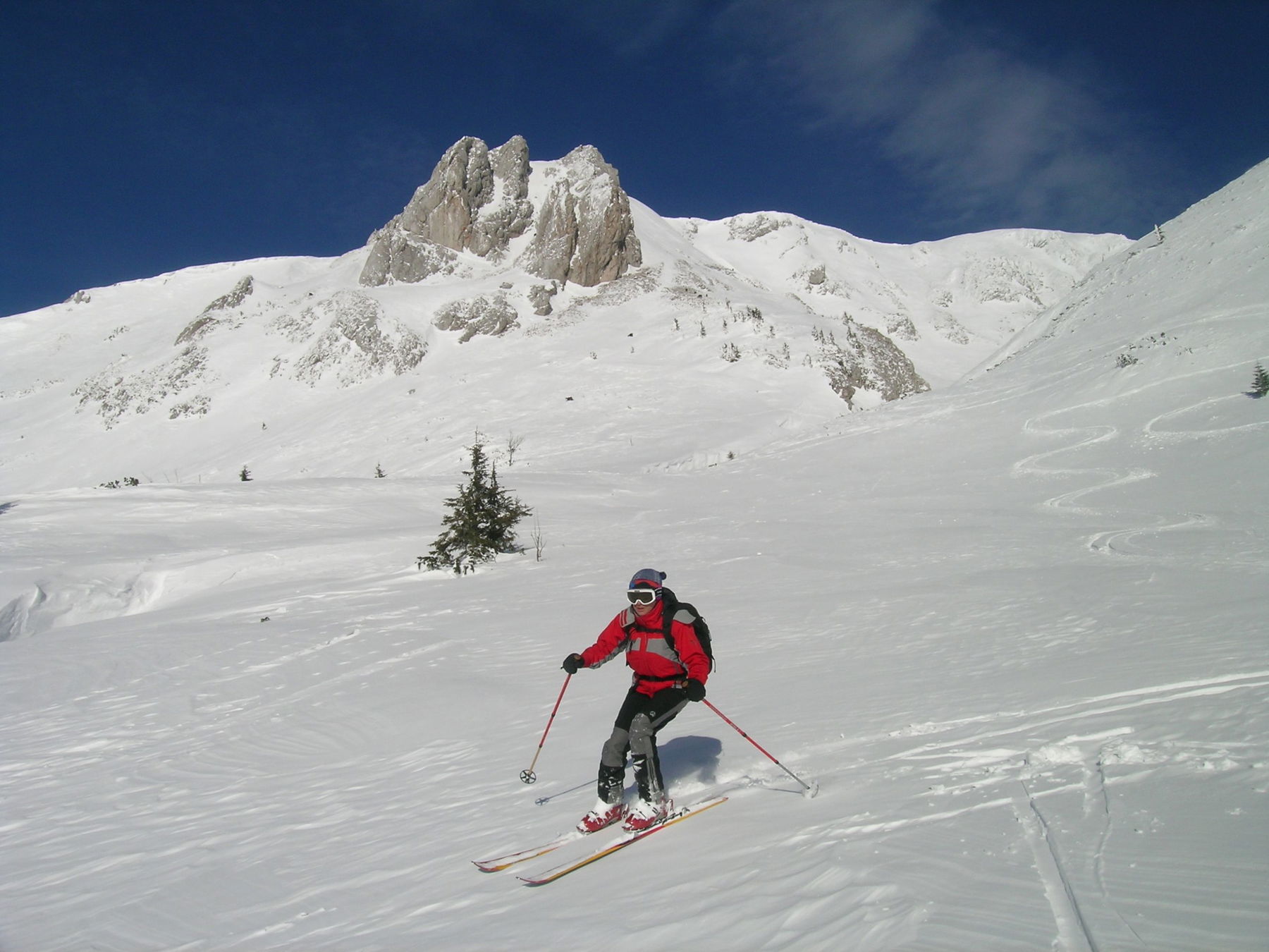 Der Schneeberg, dessen schimmernde Firnflanken an klaren Tagen bis nach Wien zu sehen sind, bildet mit dem Klosterwappen, 2076 m, den höchsten Gipfel Niederösterreichs. Seine Skitouren sind große klassische Unternehmungen, sehr beliebt, sehr viel begangen, daher meist gut gespurt und auch pistenartig ausgefahren. Im unteren Teil gibt es dank der Piste nach Losenheim bis ins Frühjahr hinein gute Abfahrtsbedingungen. Die Touren werden gerne unterschätzt, ohne Sesselliftbenutzung sind es satte 1.200 Höhenmeter bis zur Fischerhütte, und die Lawinensituation sollte man auch im Auge behalten (insbesondere auf dem Fadenweg unter den Fadenwänden und im Wurzengraben). Bei schlechter Sicht ab Fischerhütte immer genau auf die Himmelsrichtung für die gewählte Abfahrt achten!